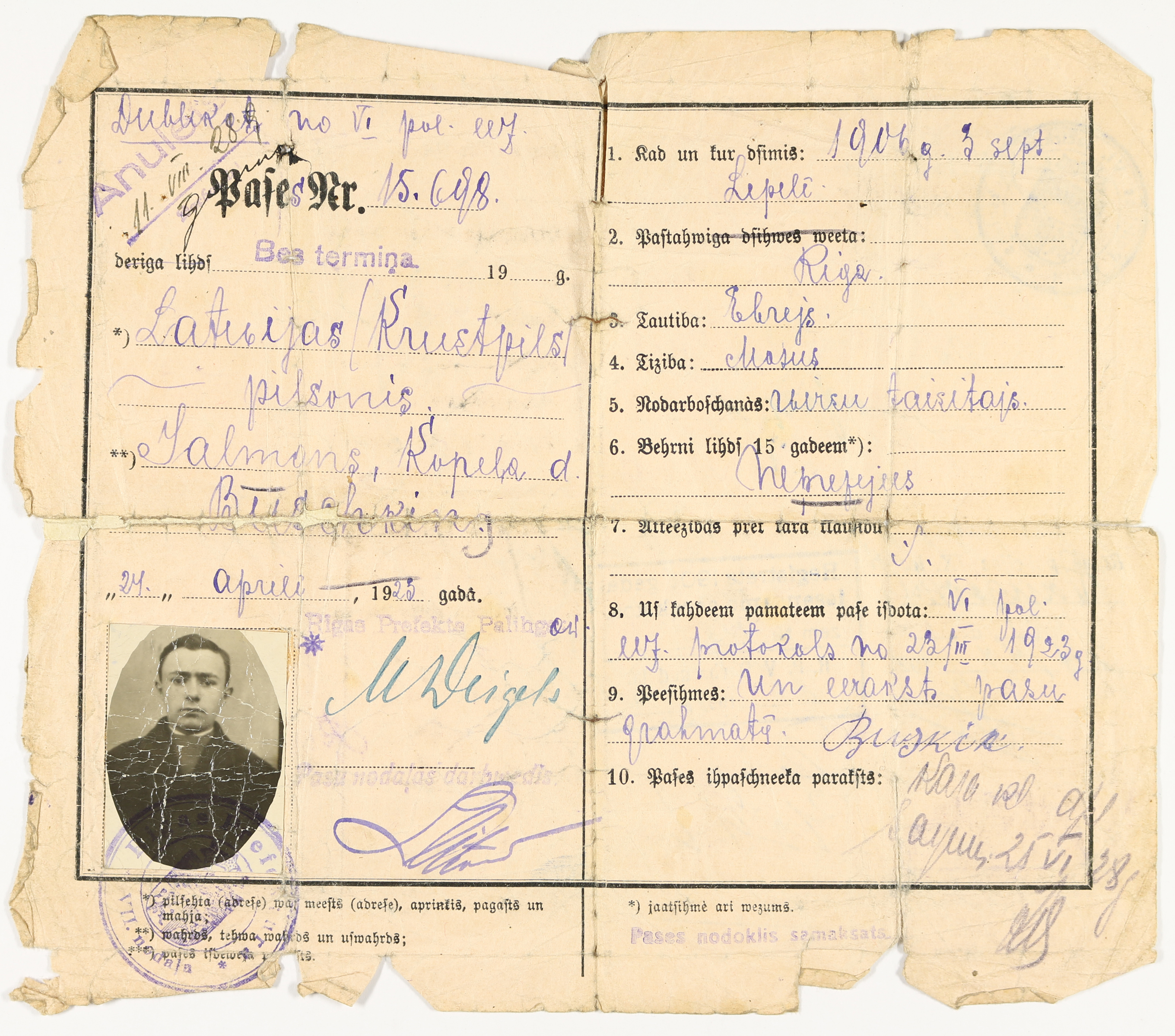 Buškins Zalmans 1906 Lettland private Dokumentation