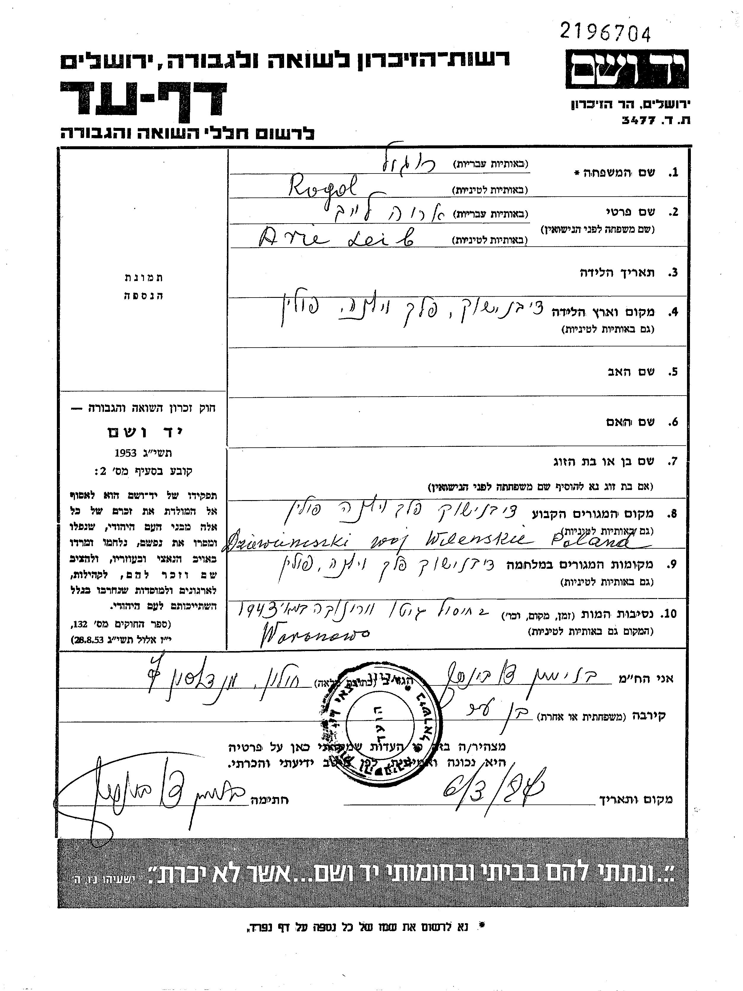 Rogol Arie Leib Dziewieniszki, Polen Liste ermordeter Juden aus Gedenkbuechern (Yizkor Books)