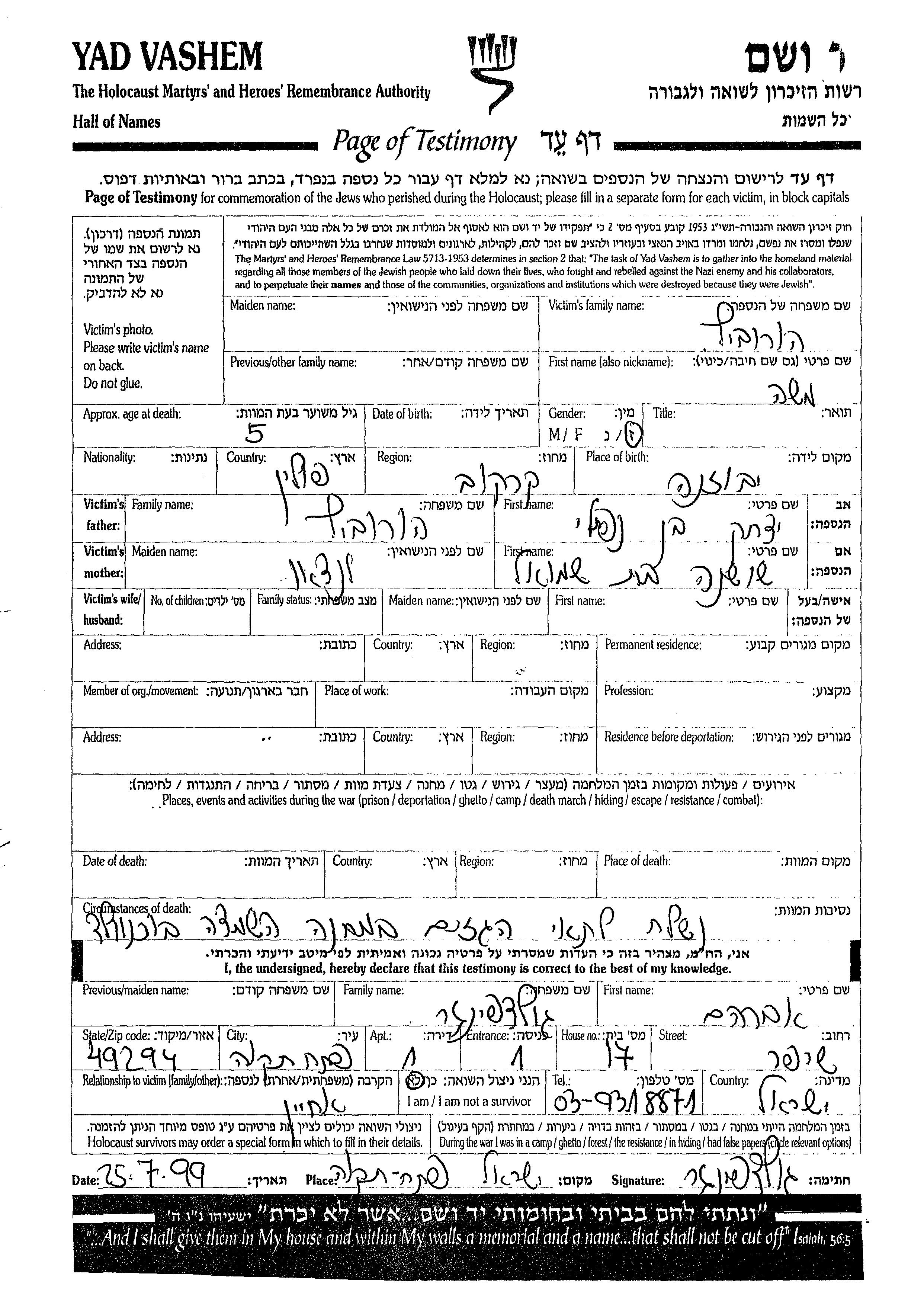 Mosze wurde in der Schoah ermordet.