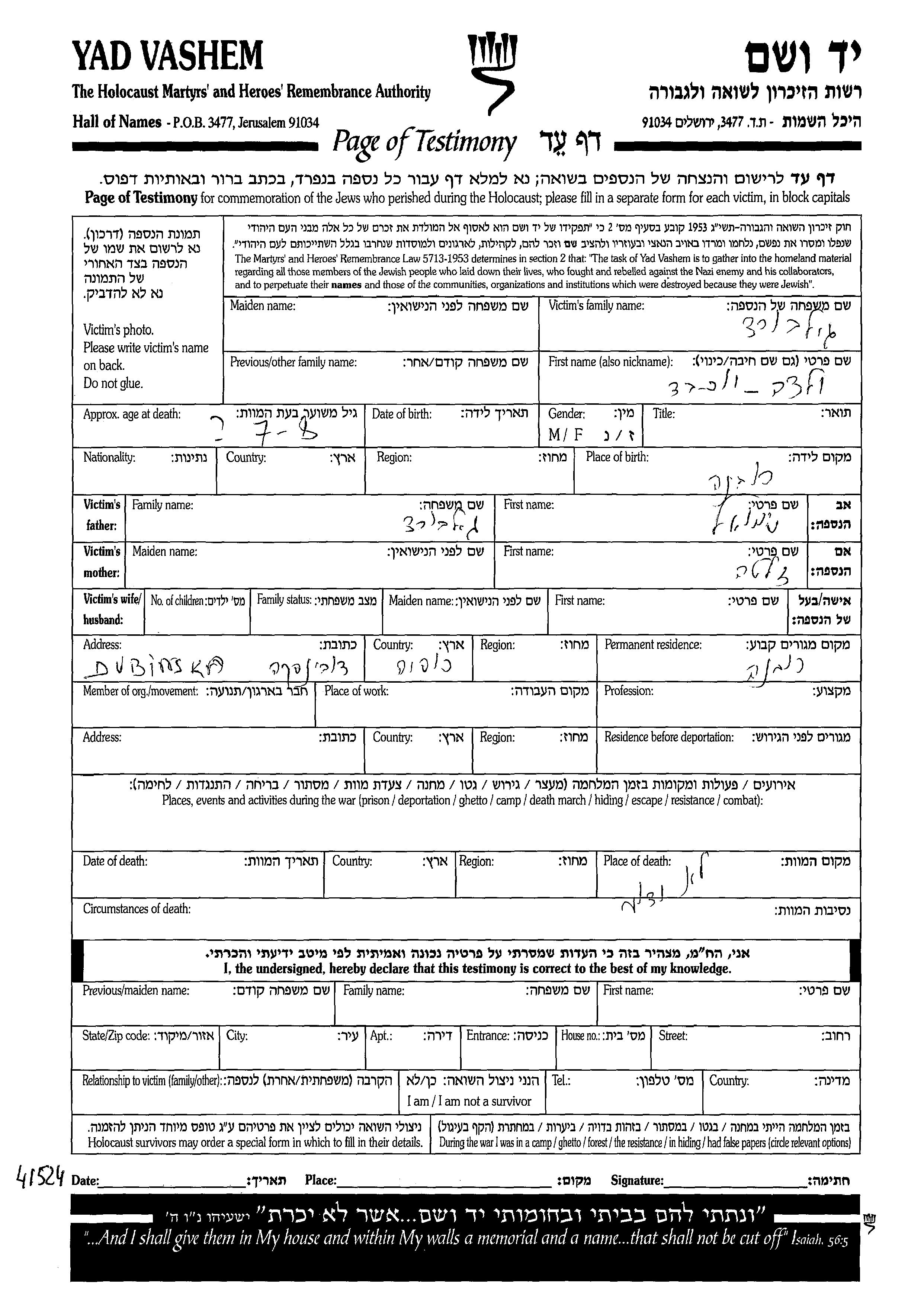 Yokheved wurde in der Schoah ermordet. Todesort: unbekannter Ort.