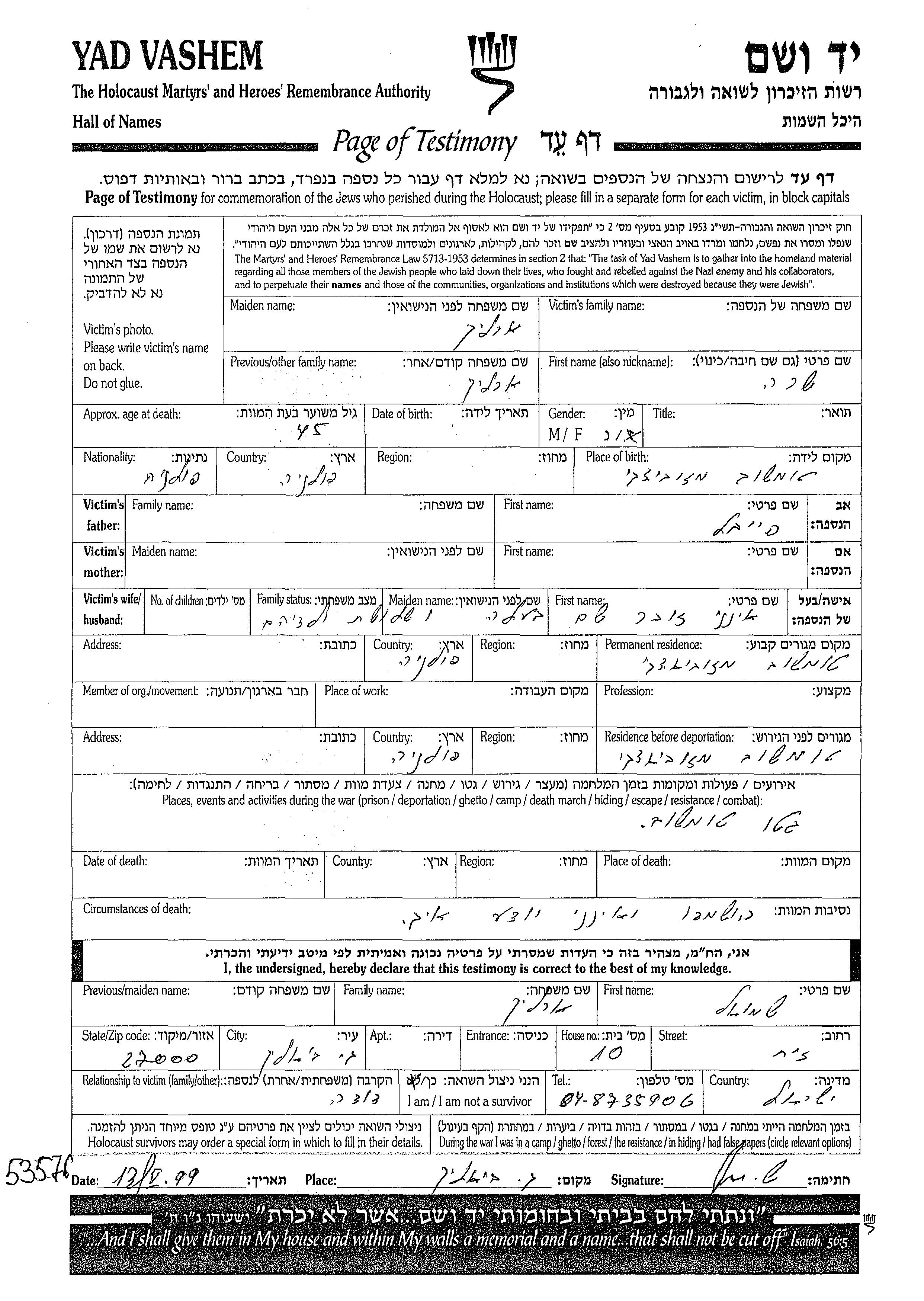 Sara wurde in der Schoah ermordet. Todesort: Tomaszow Mazowiecki, Polen.