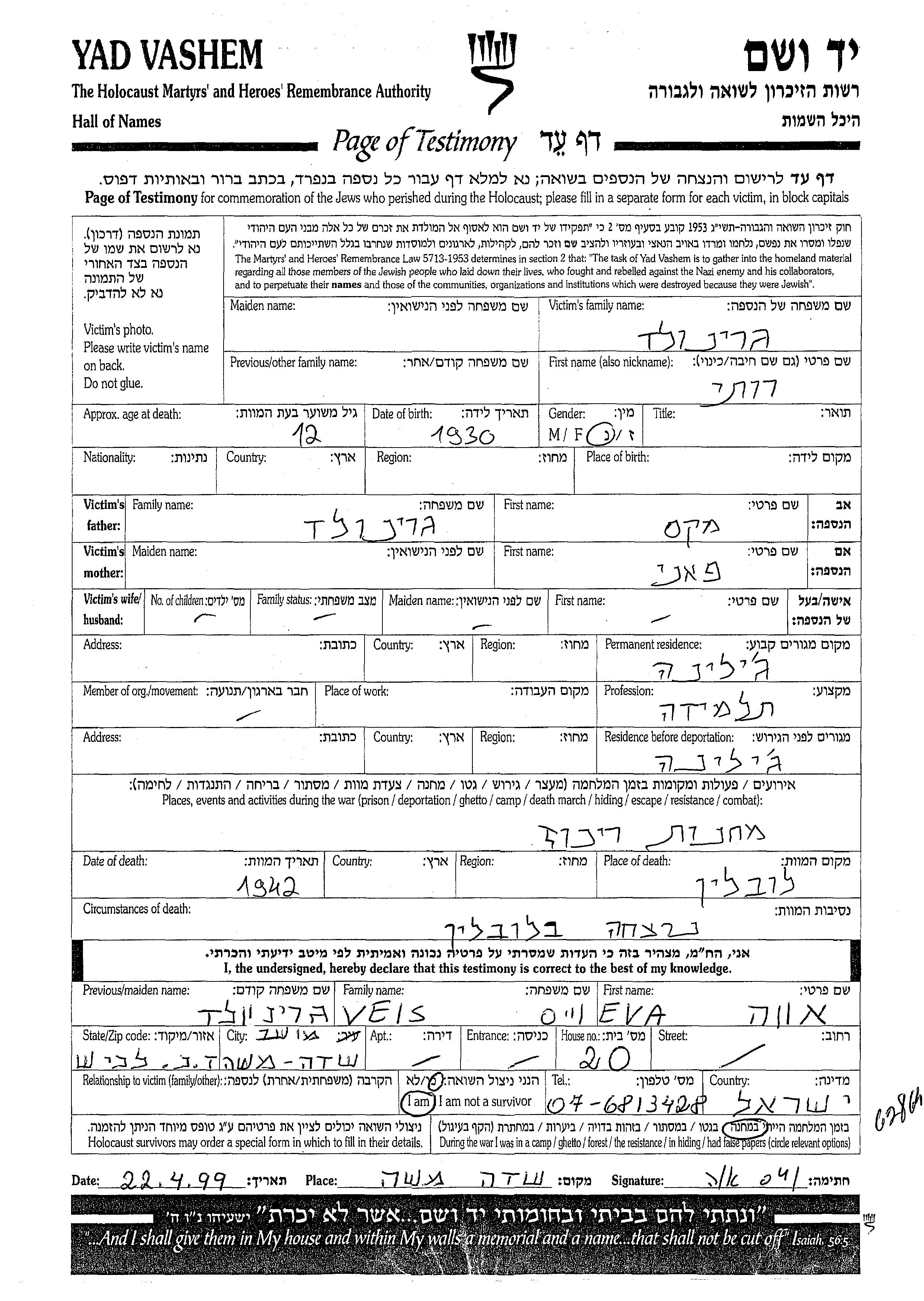 Grinvald | Ruti | 1930 | Zilina, Tschechoslowakei | Gedenkblatt |