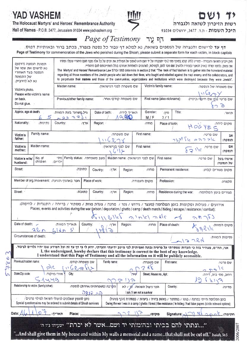 Perel Eckstein wurde im Jahr 1934 in Hogyesz, Ungarn geboren. Vor dem Zweiten Weltkrieg lebte sie in Hogyesz, Ungarn.