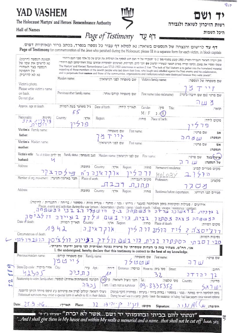 Moshe wurde in der Schoah ermordet. Todesort: Rozyszcze, Massaker Ort.