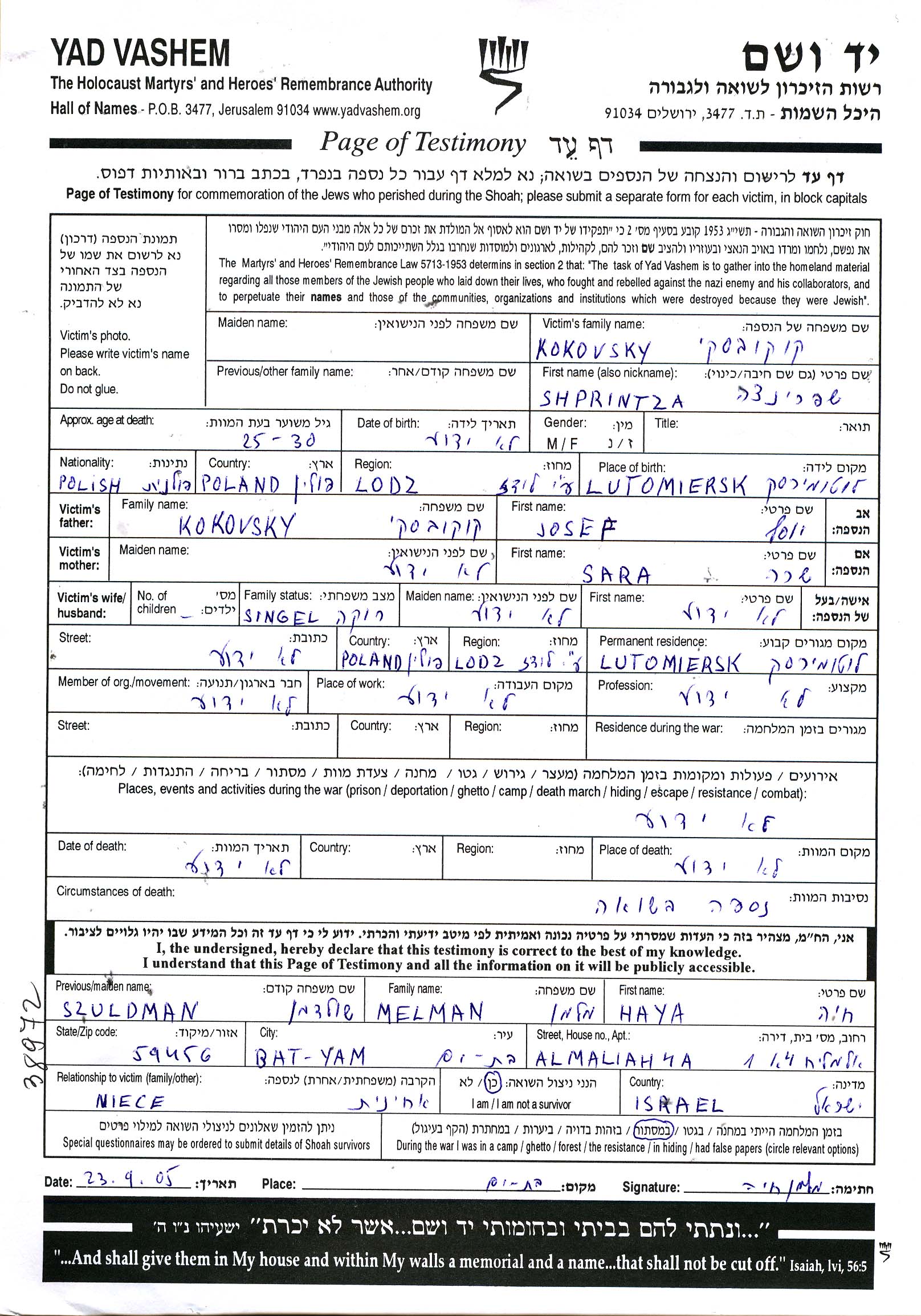 Shprintza wurde in der Schoah ermordet. Todesort: Łódź, Polen.