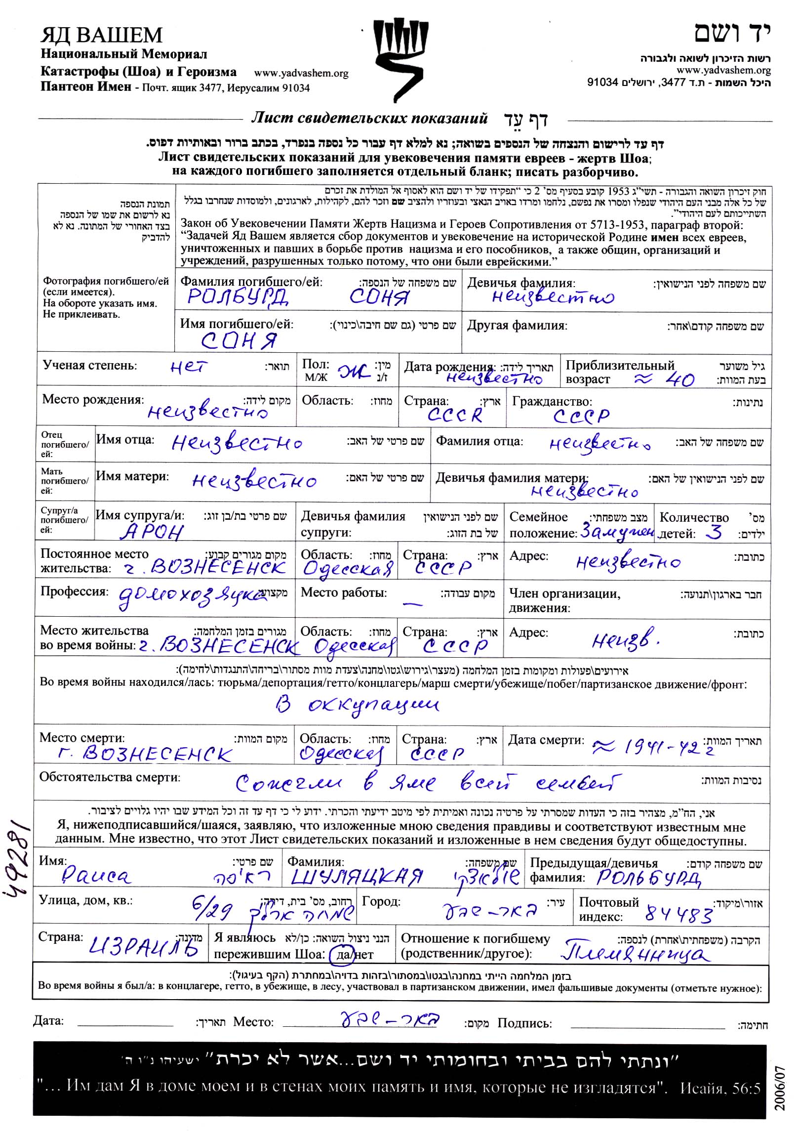 Sonya wurde in der Schoah ermordet. Todesort: unbekannter Ort im Jahr 1941.