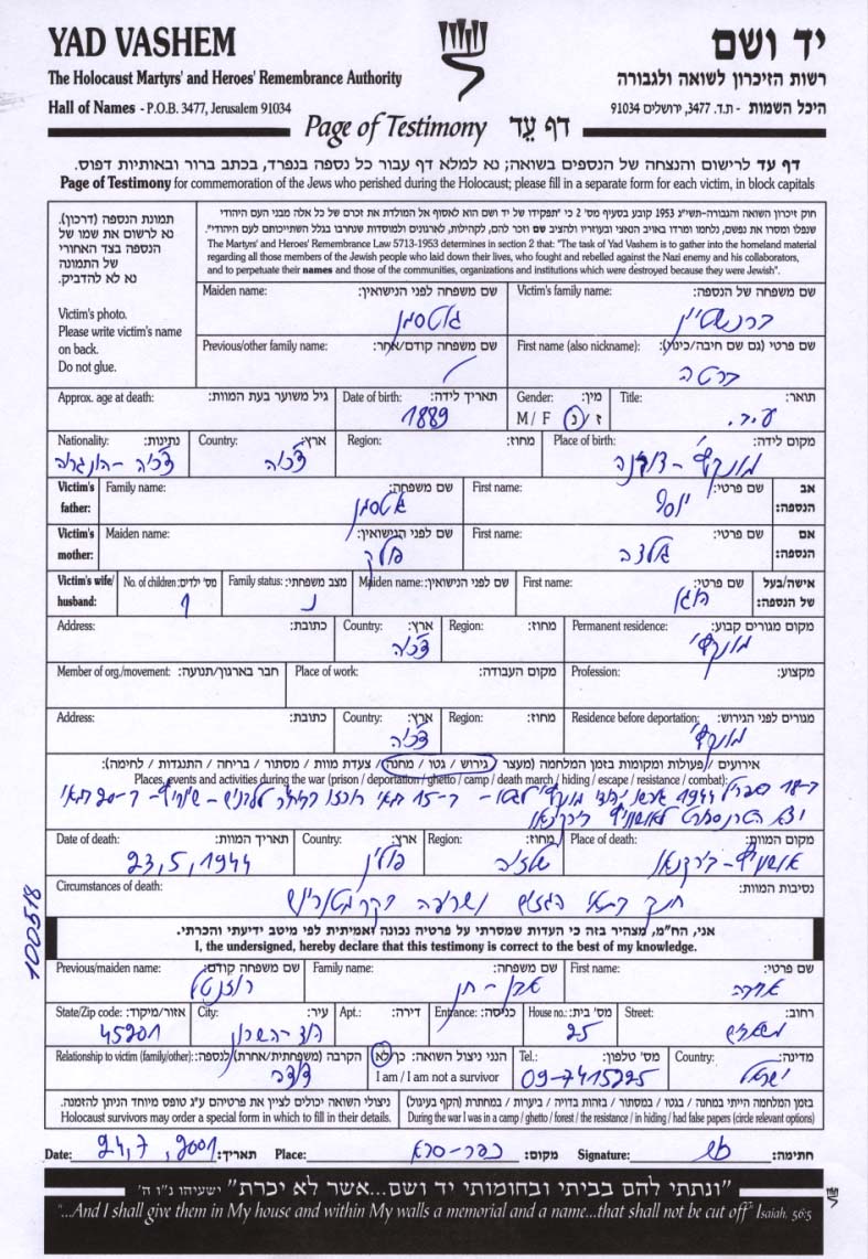 Berta Bernsztejn, geb. Gotesman wurde im Jahr 1900 in Mukacevo, Tschechoslowakei geboren. Sie war Hausfrau. Vor dem Zweiten Weltkrieg lebte sie in Mukacevo, Tschechoslowakei.