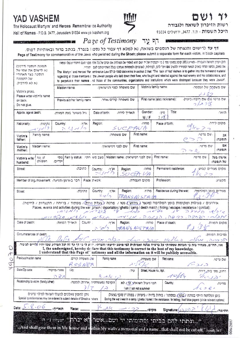 Artur wurde in der Schoah ermordet. Todesort: Luchinets, Ukraine (UdSSR) im Jahr 1942.