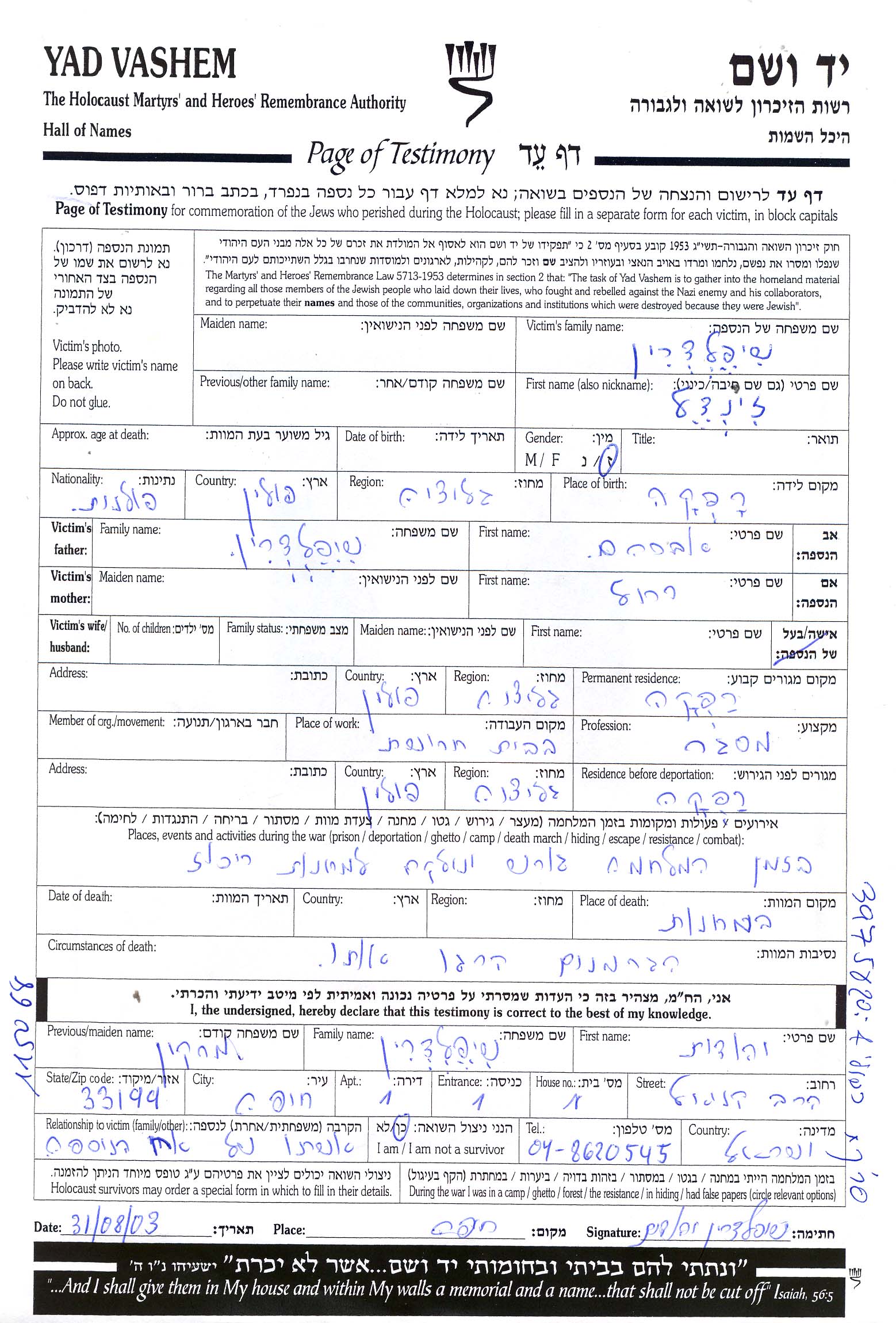 Suche nach einem Todesjahr im Zeitraum der Holocaust: 1933 bis 1945. Bitte wählen Sie 'Exakt' im Auswahlmenü, um nur nach einem einzelnen Jahr zu suchen, alternativ können Sie die flexibleren Optionen '+/- 2 Jahre' oder '+/- 5 Jahre' wählen.
