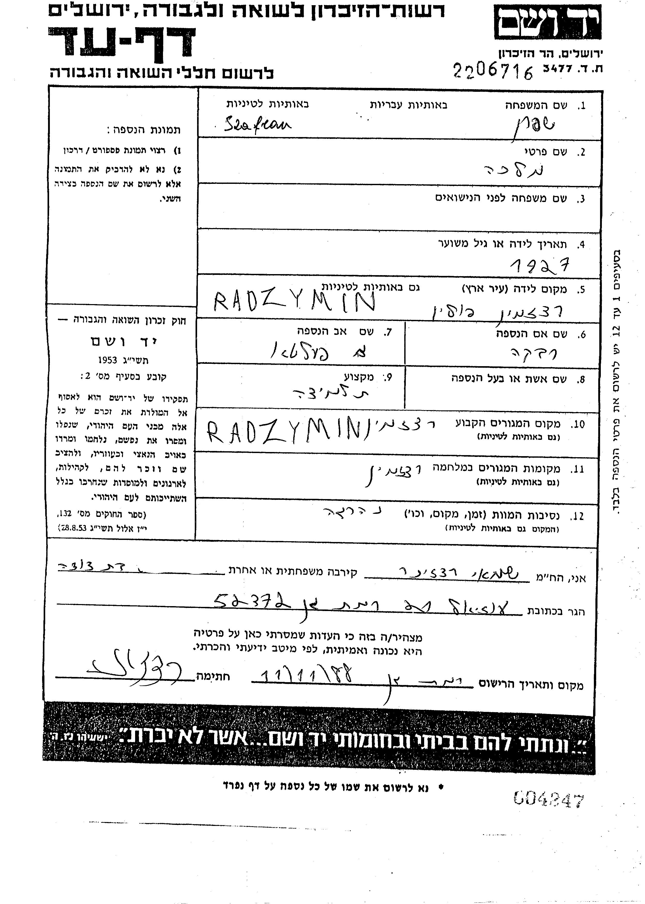 Szafran Malka Radzymin, Polen Gedenkblatt