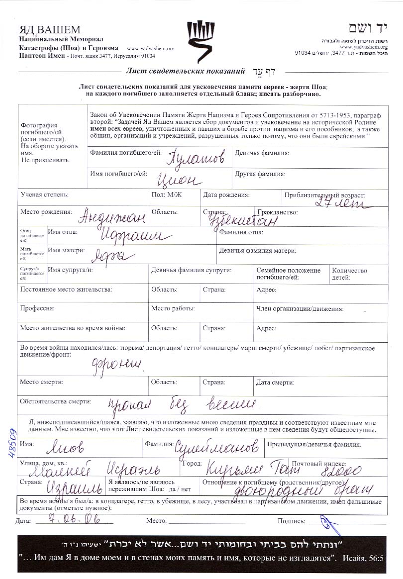 | Pulatov | Sion | 1914 | Andizhan, Uzbekistan (UdSSR) | Gedenkblatt |