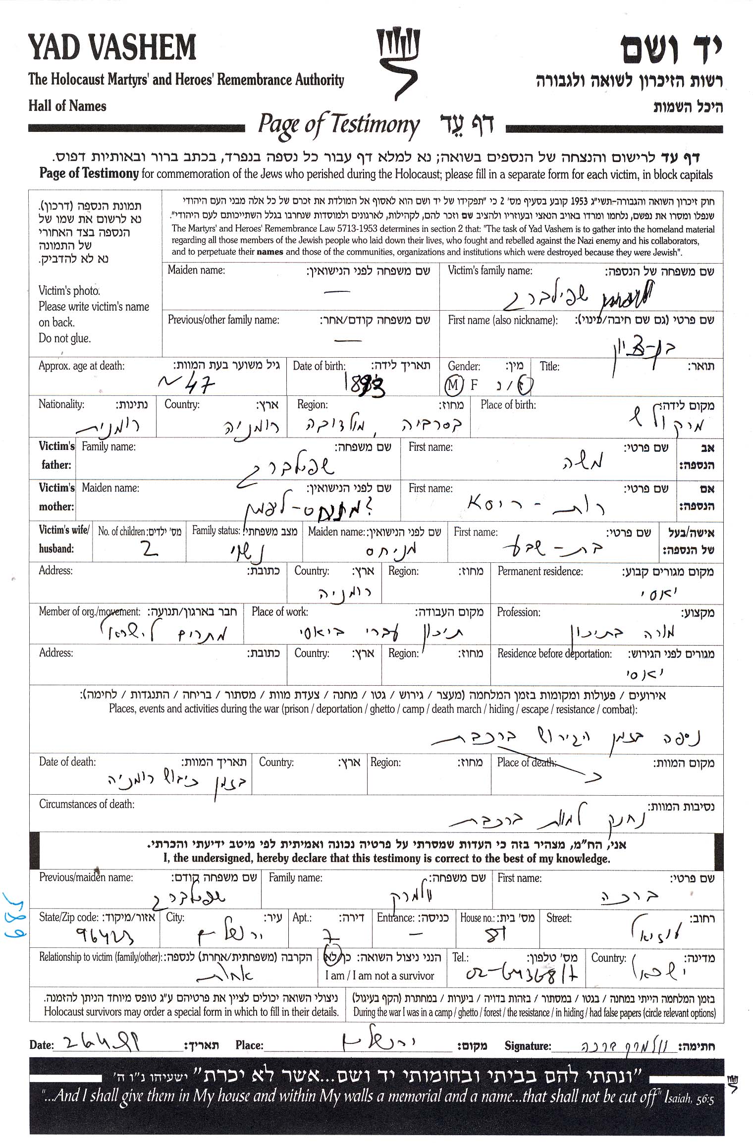 Bentzion wurde in der Schoah ermordet. Todesort: Iasi, Rumänien im Jahr 1941.