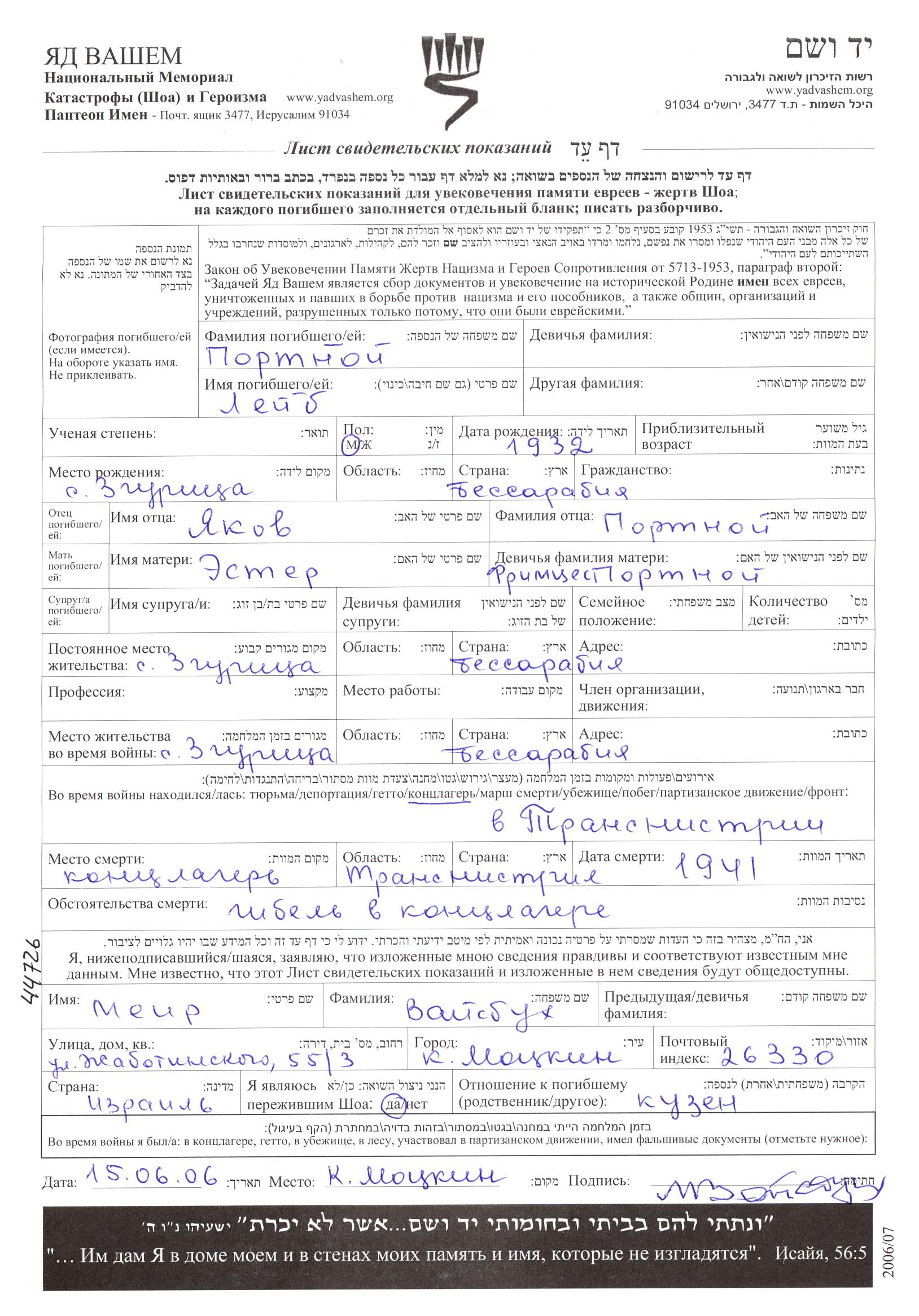 Leib wurde in der Schoah ermordet. Todesort: Rybnik, Strafanstalt im Jahr 1942.