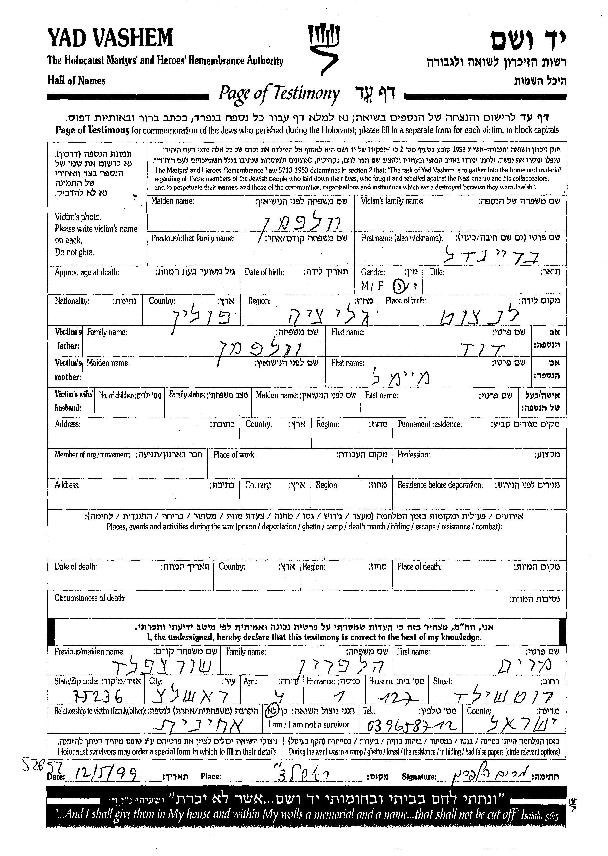 Brandla wurde in der Schoah ermordet. Todesort: Lancut, Polen.