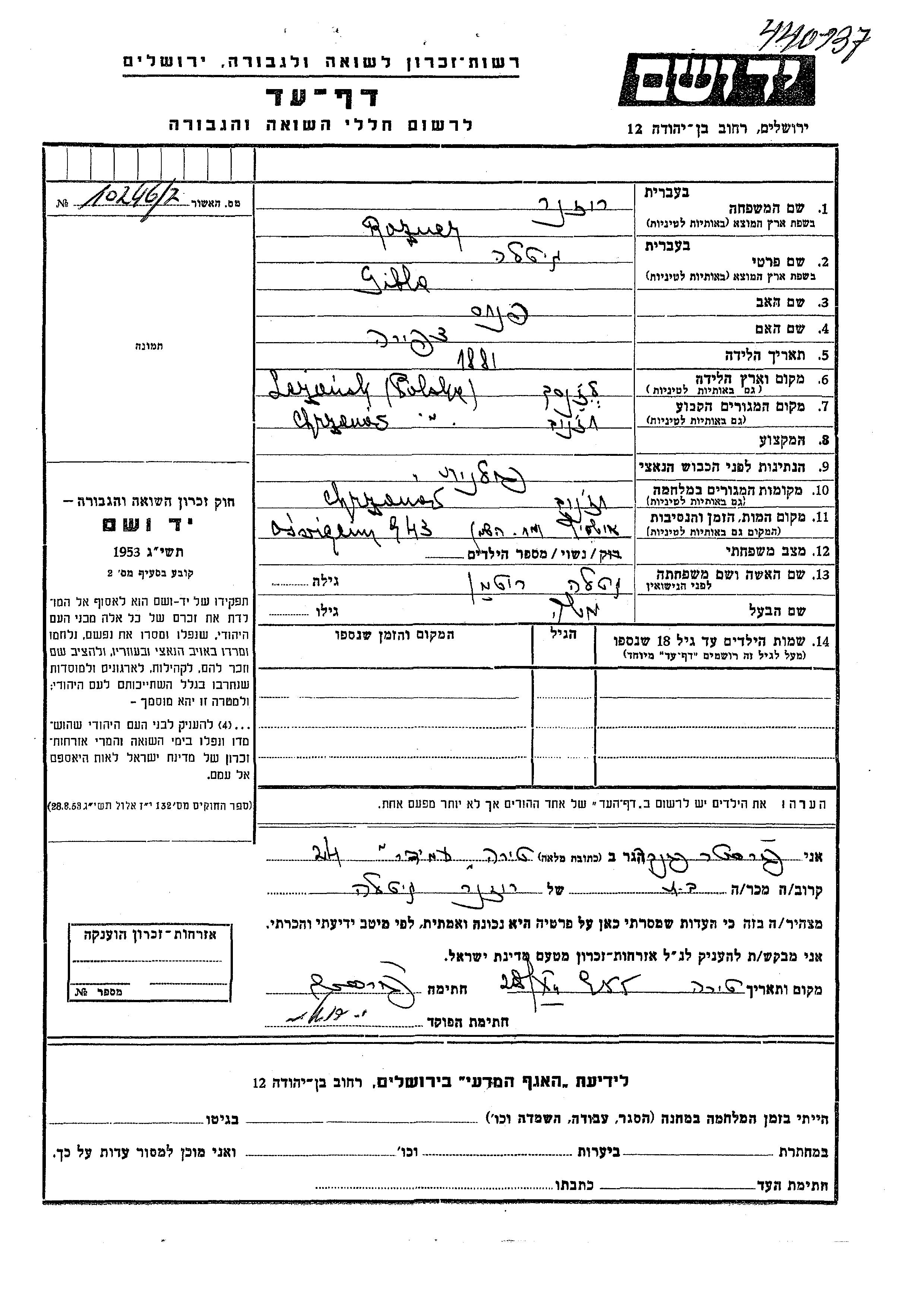 Gitle wurde in der Schoah ermordet. Todesort: unbekannt im Jahr 1943.