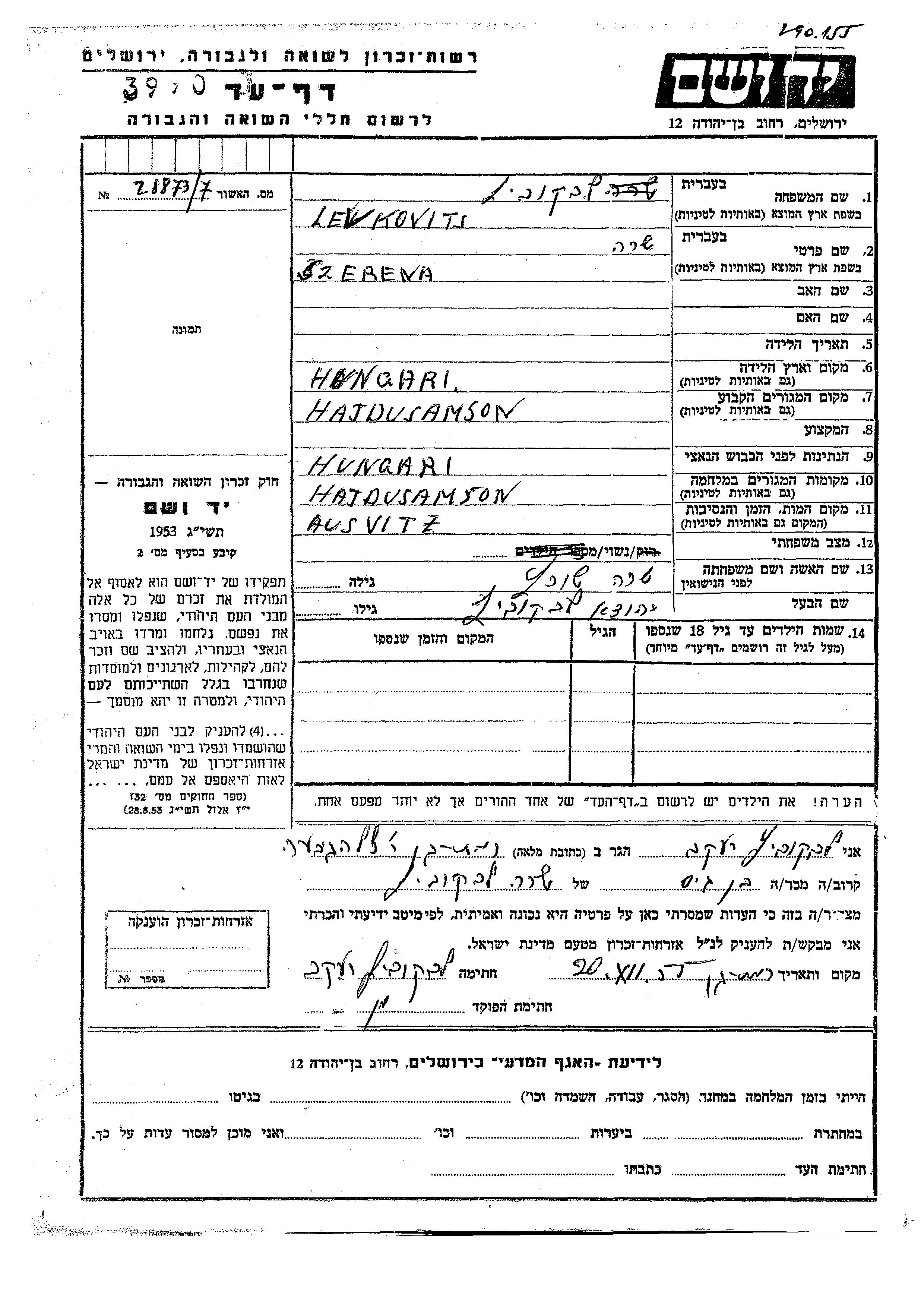 Levkovitz | Serena Zelda | Samson, Ungarn | Gedenkblatt | |