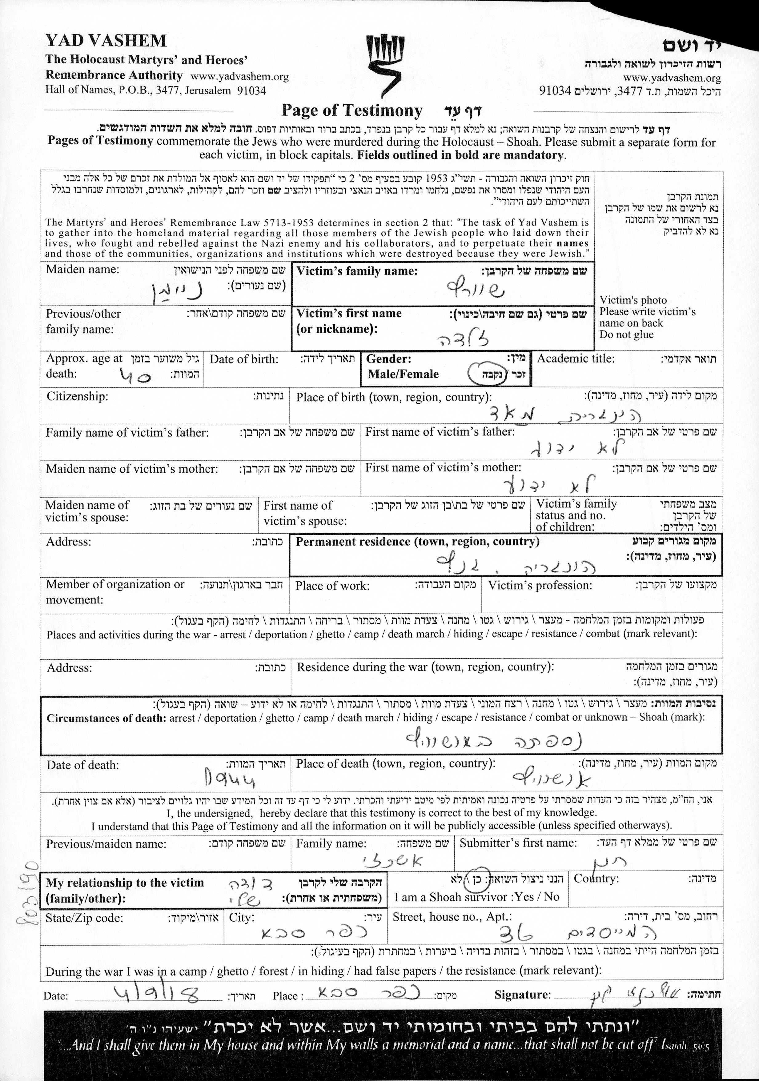Zelda wurde in der Schoah ermordet. Todesort: Auschwitz, Polen im Jahr 1944.