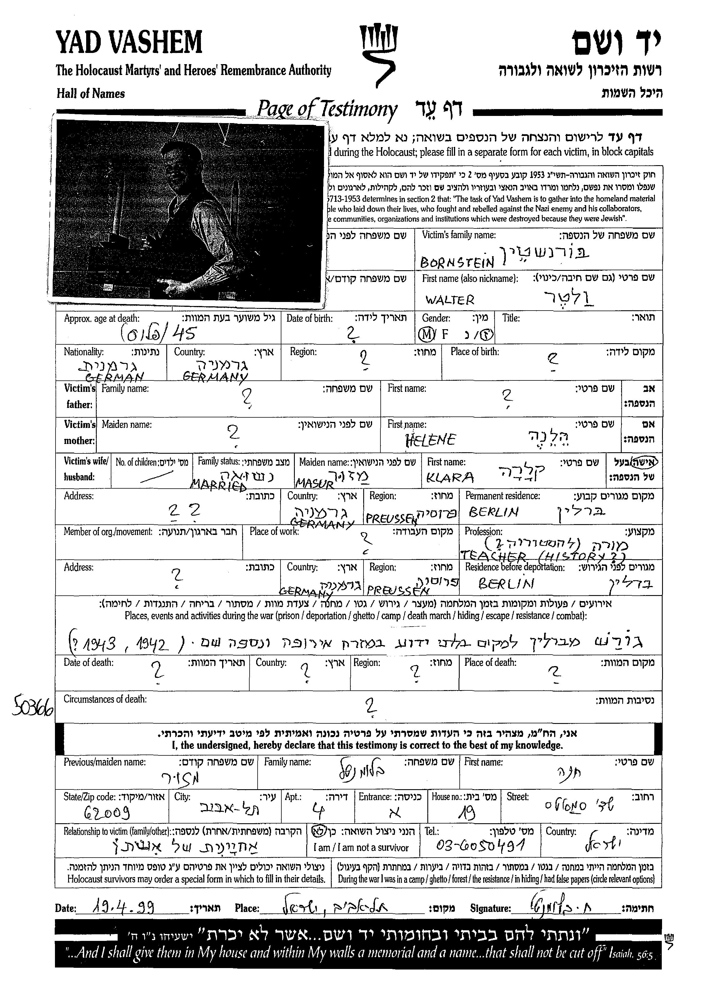 Walter Bornstein wurde in Deutsches Reich geboren. Er war Geschichtslehrer. Vor dem Zweiten Weltkrieg lebte er in Berlin, Deutsches Reich.