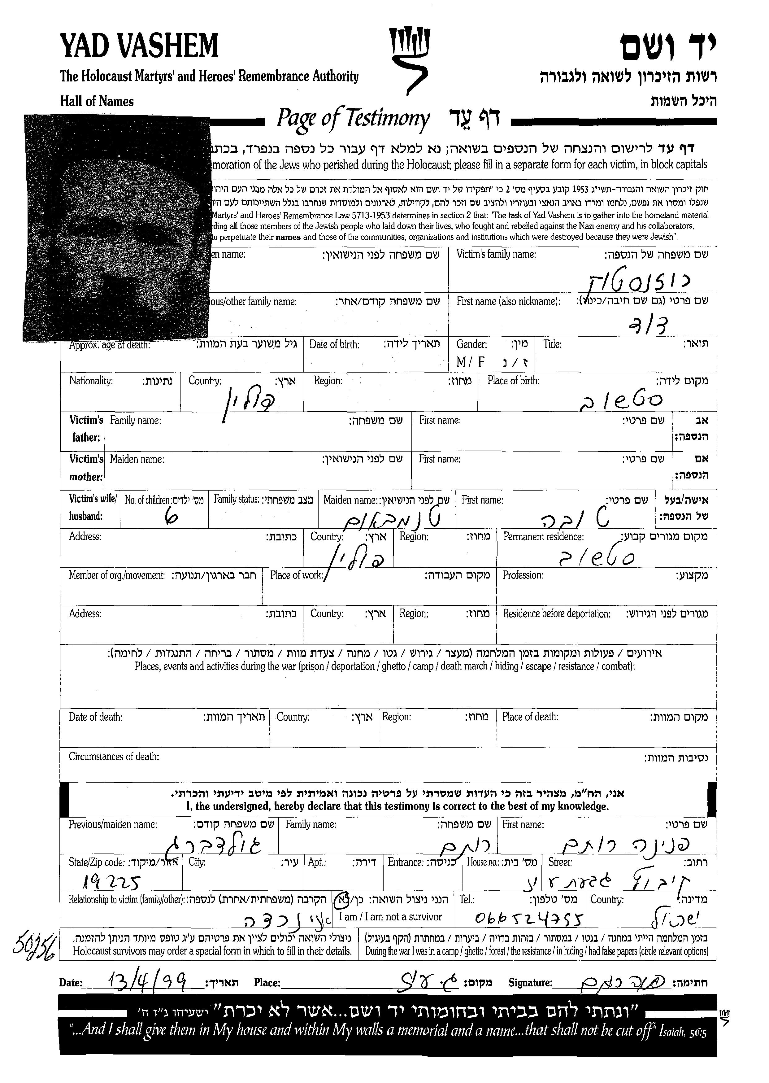 David Rozenstok wurde in Staszow, Polen geboren. Vor dem Zweiten Weltkrieg lebte er in Staszow, Polen.
