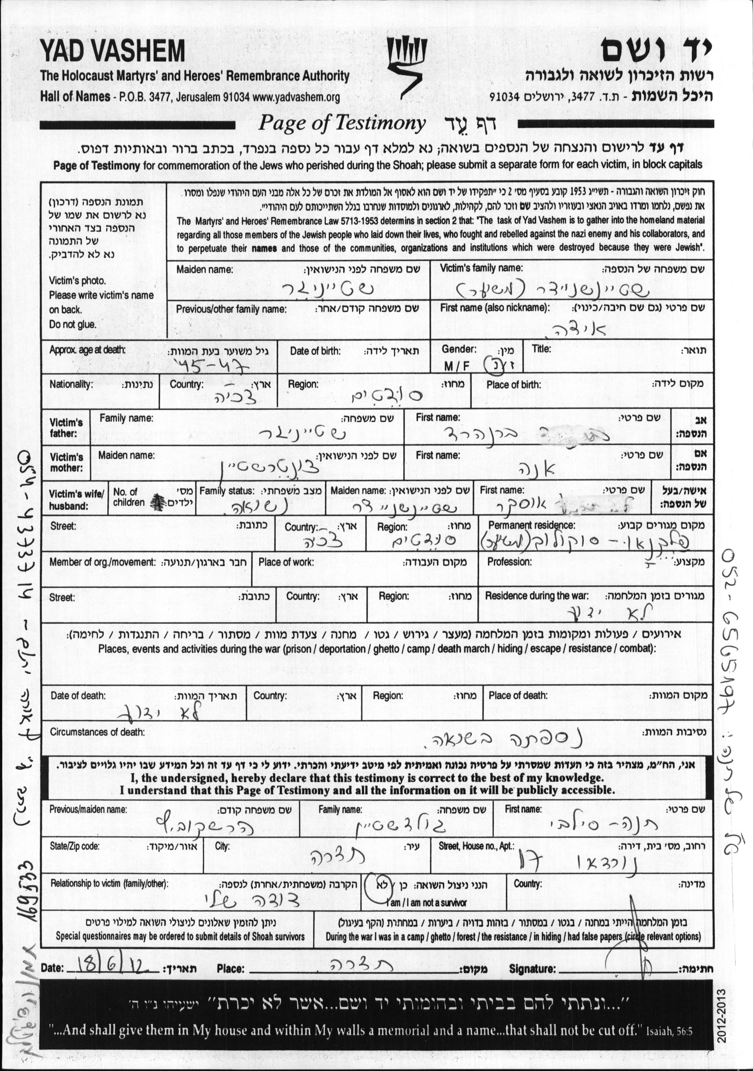Ida Shteinshneider, geb. Shteiniger wurde in Sudetenland, Tschechoslowakei geboren. Vor dem Zweiten Weltkrieg lebte sie in Falknov nad Ohri, Tschechoslowakei.