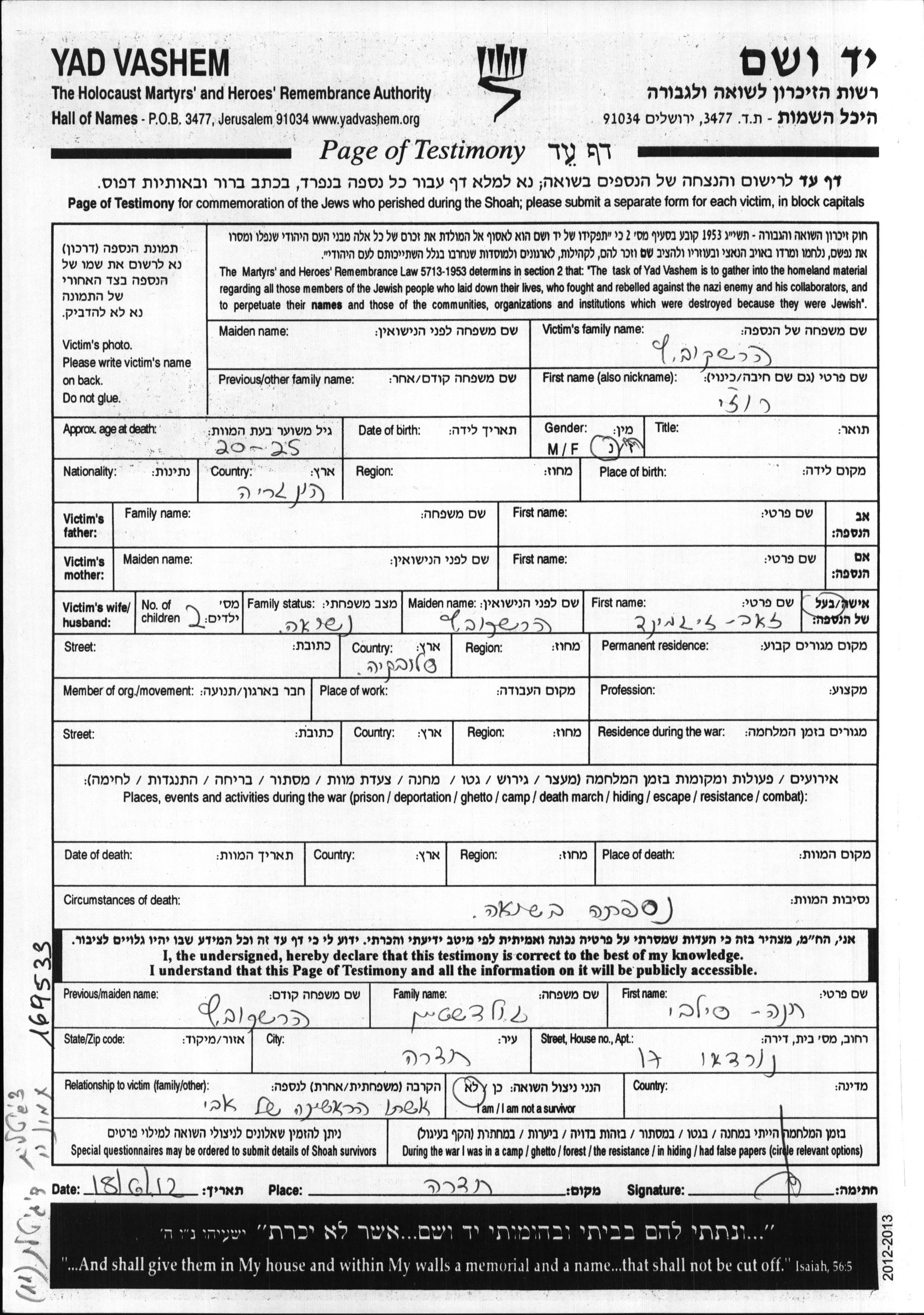 Roza wurde in der Schoah ermordet. Todesort: unbekannter Ort.