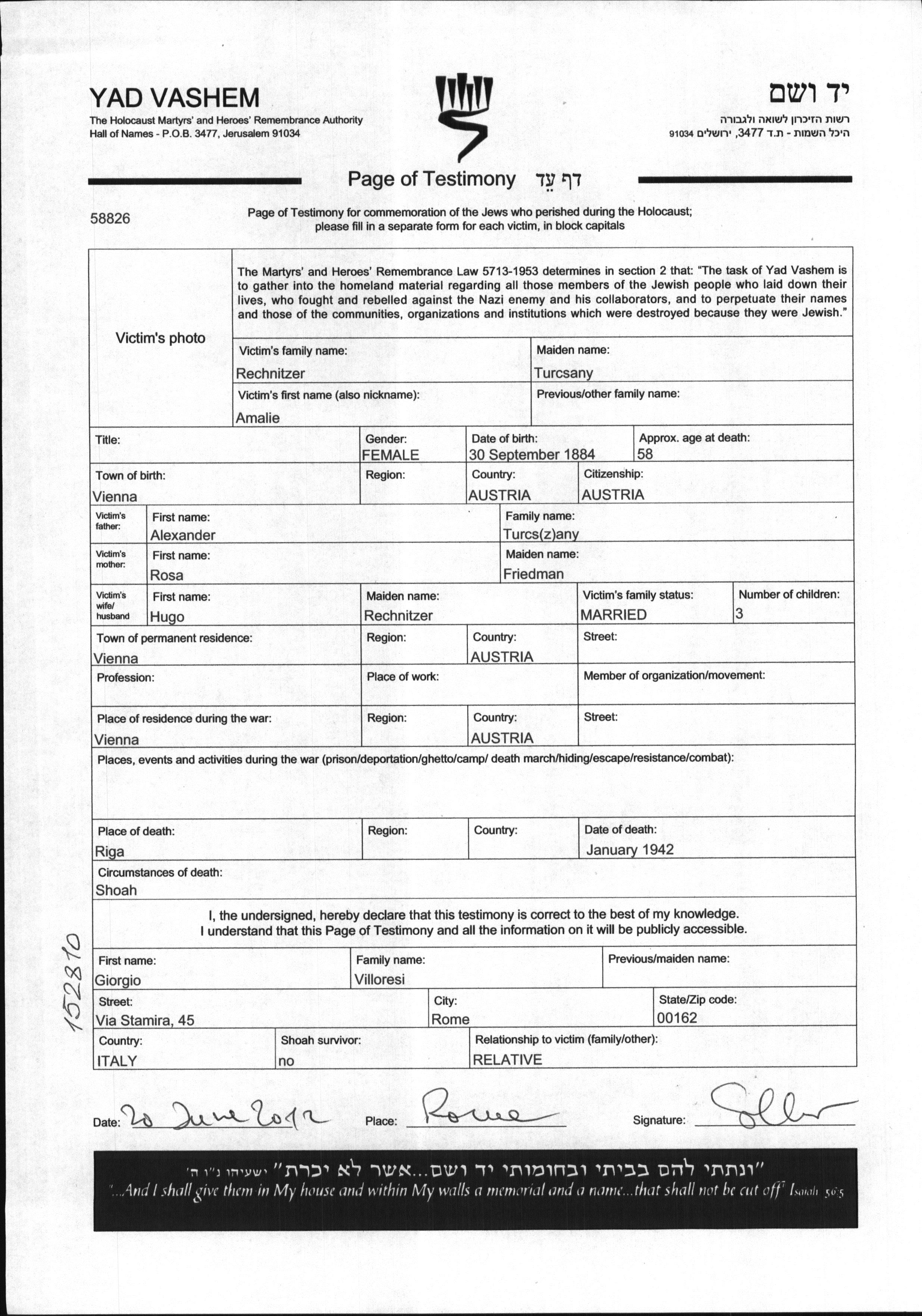 Rechnitzer | Amalie | 1884 | Wien, Österreich | Liste von ermordeten oesterreichischen Juden |
