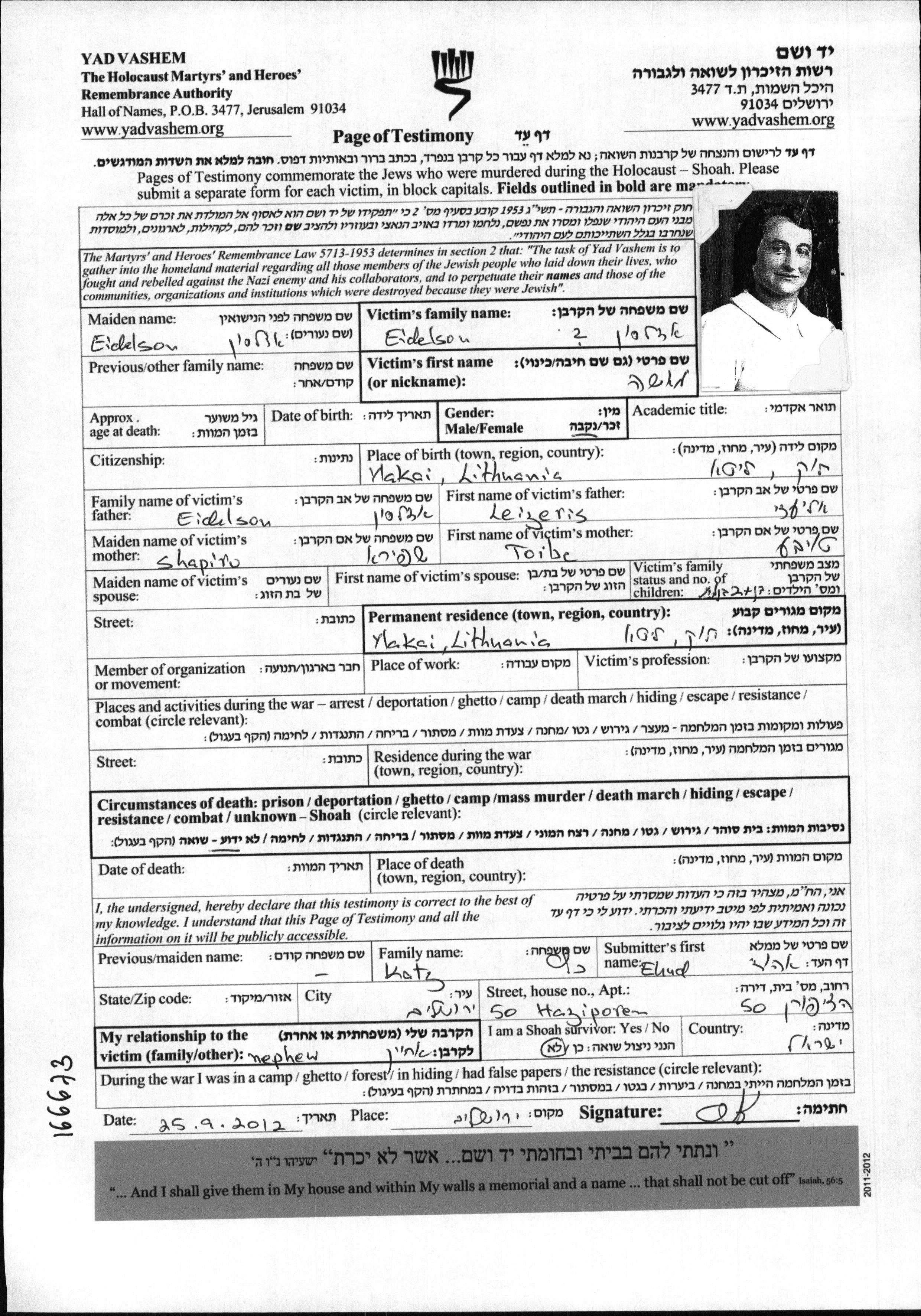 Eidelson Masha Ylakai, Litauen Gedenkblatt