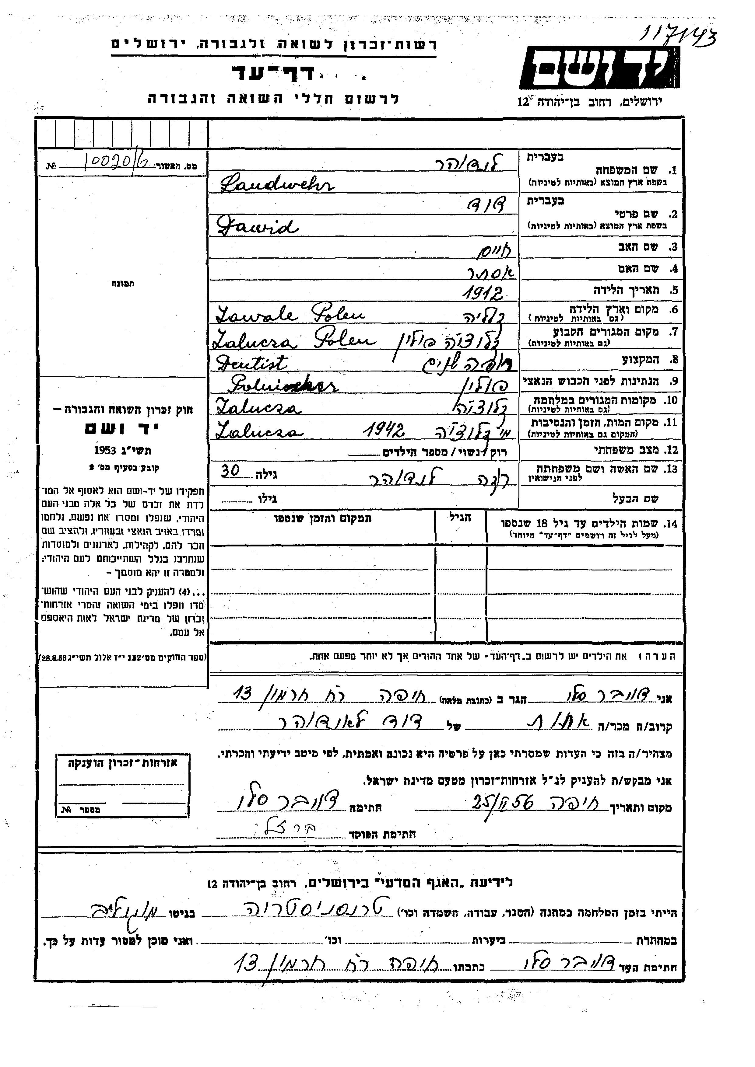 Dawid wurde in der Schoah ermordet. Todesort: Zalucze nad Czeremoszem, Polen im Jahr 1942.