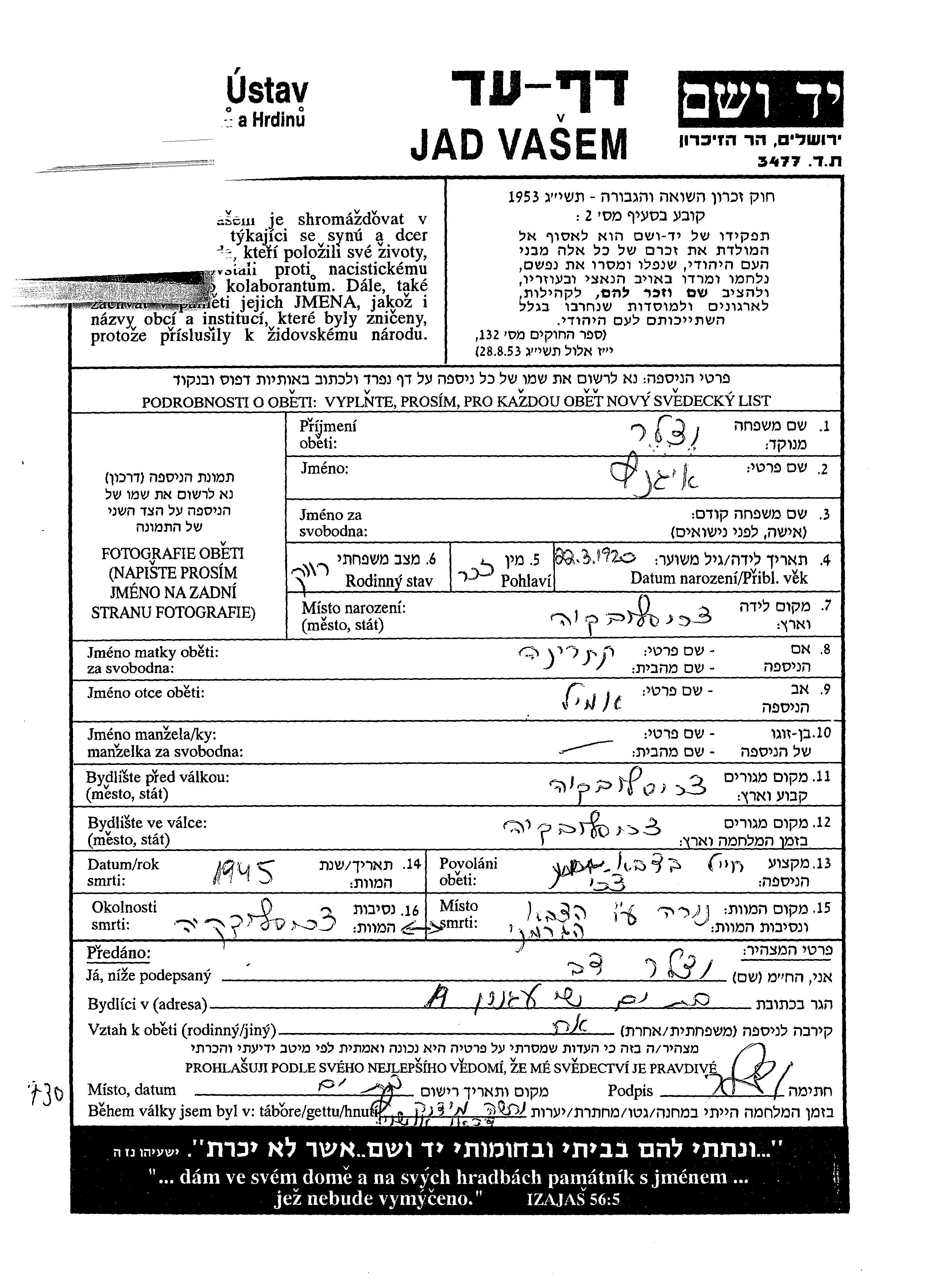 Ignatz wurde in der Schoah ermordet. Todesort: Tschechoslowakei im Jahr 1945.