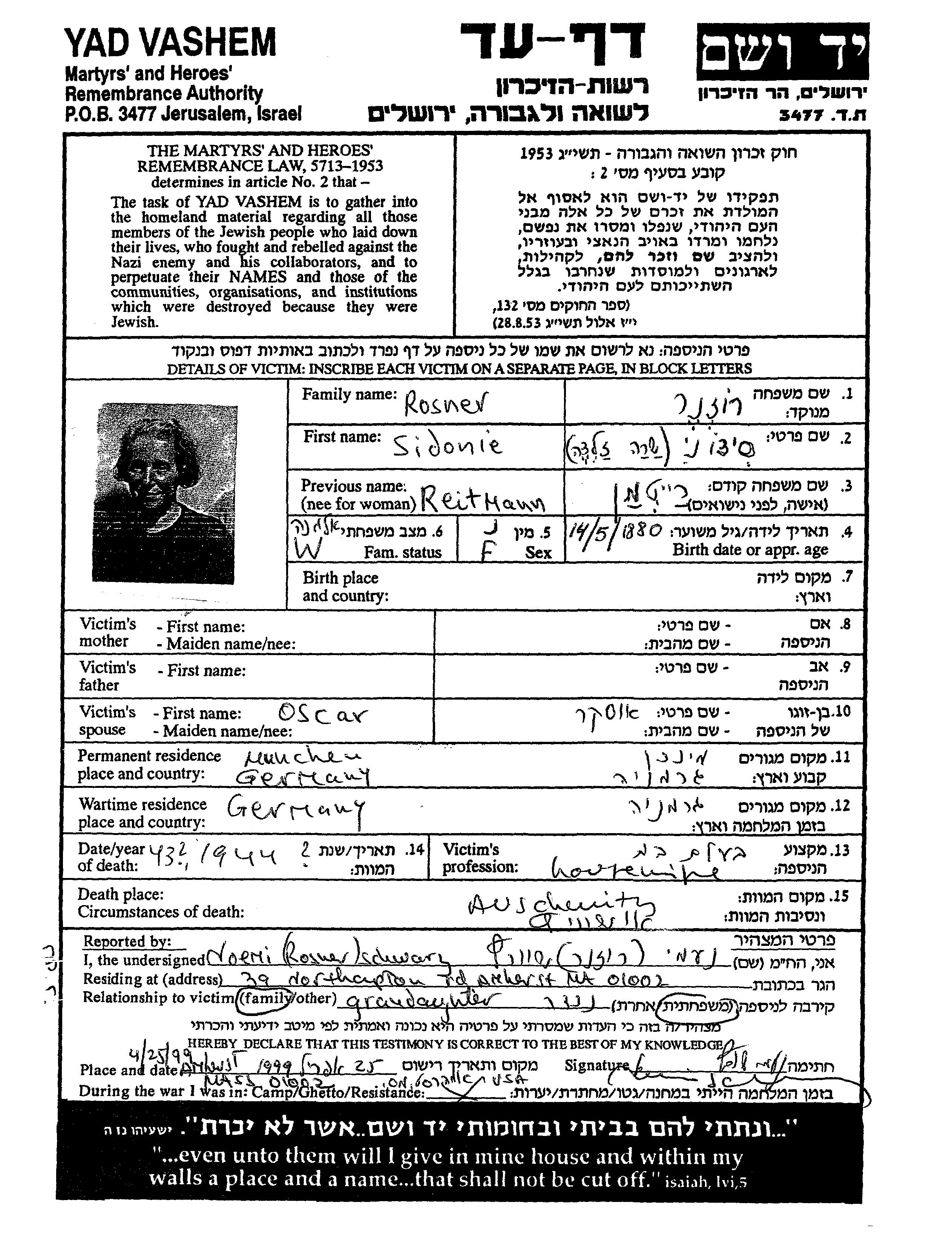 Suche nach einem Todesjahr im Zeitraum der Holocaust: 1933 bis 1945. Bitte wählen Sie 'Exakt' im Auswahlmenü, um nur nach einem einzelnen Jahr zu suchen, alternativ können Sie die flexibleren Optionen '+/- 2 Jahre' oder '+/- 5 Jahre' wählen.