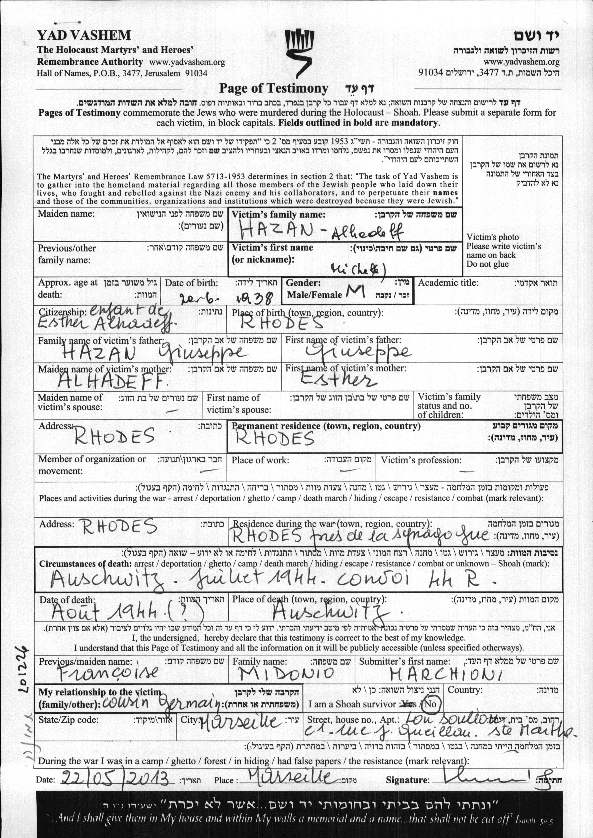 Michel Hazan wurde im Jahr 1938 in Rodi, Italien geboren. Vor dem Zweiten Weltkrieg lebte er in Rodi, Italien.