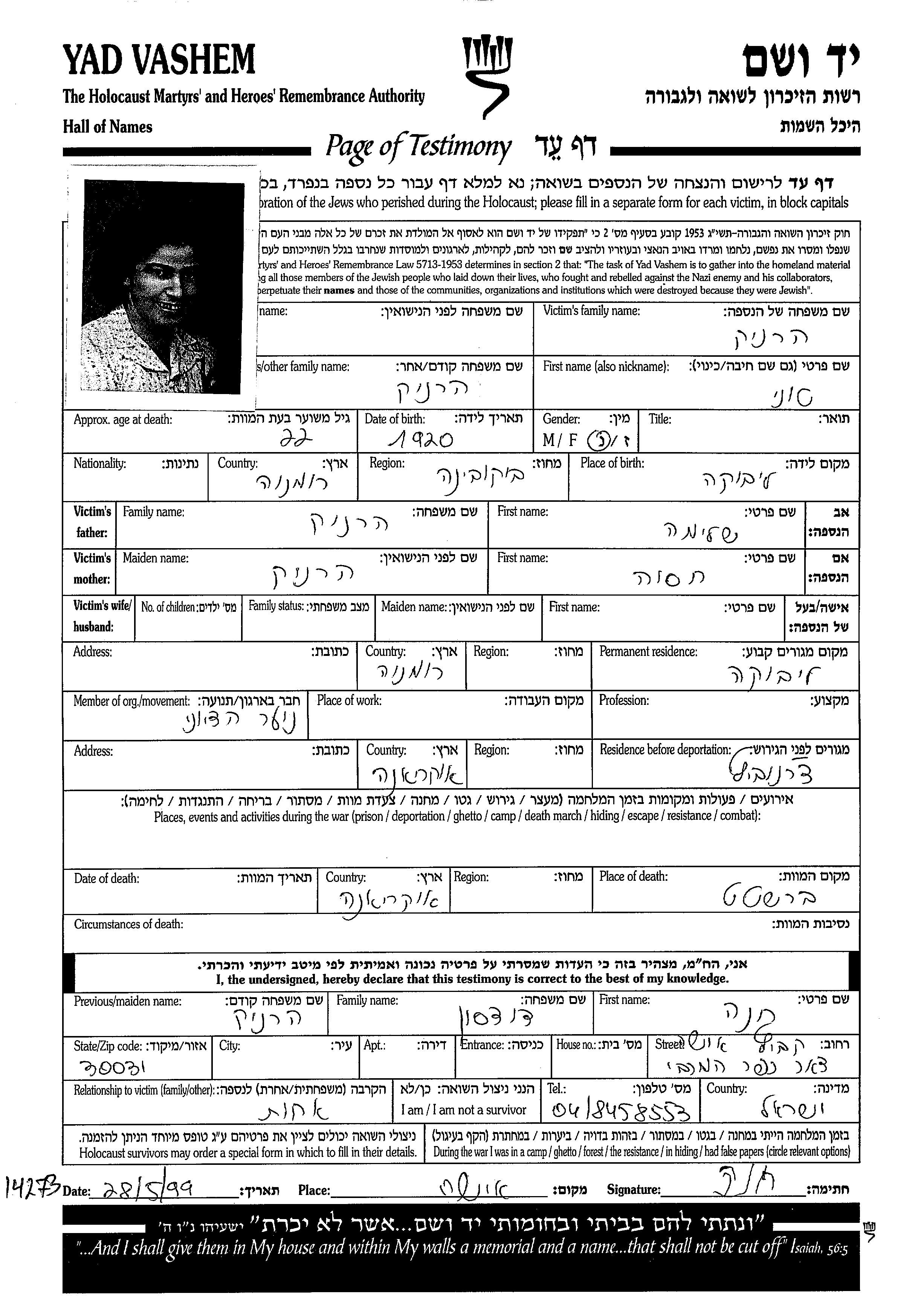 Toni Harnik wurde im Jahr 1920 in Lepcauti, Rumänien geboren. Vor dem Zweiten Weltkrieg lebte sie in Lepcauti, Rumänien.