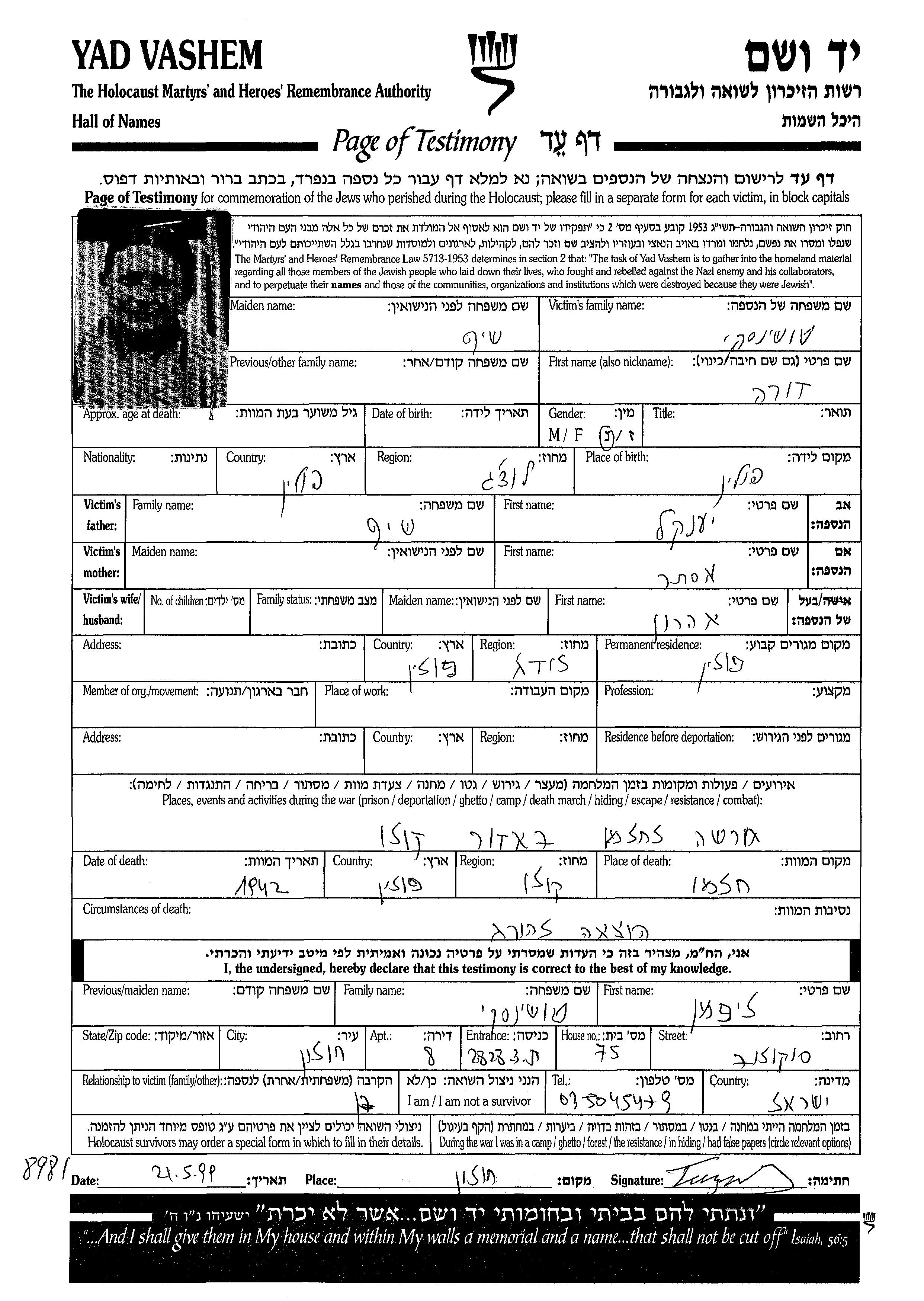 Dora Tushinski, geb. Shif wurde in Łódź, Polen geboren. Vor dem Zweiten Weltkrieg lebte sie in Łódź, Polen.