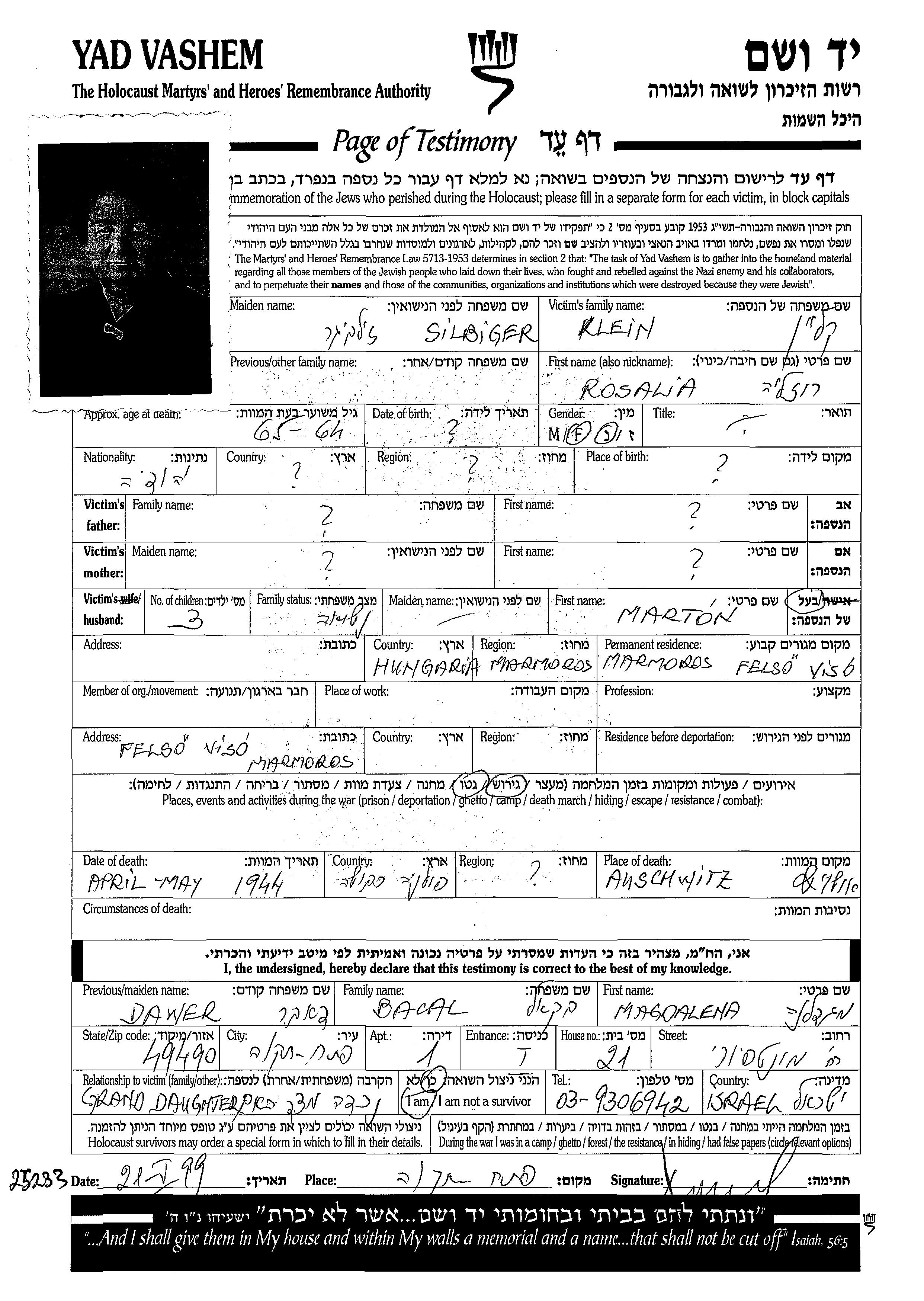 Rosalia wurde in der Schoah ermordet. Todesort: Auschwitz, Polen im Jahr 04/1944.