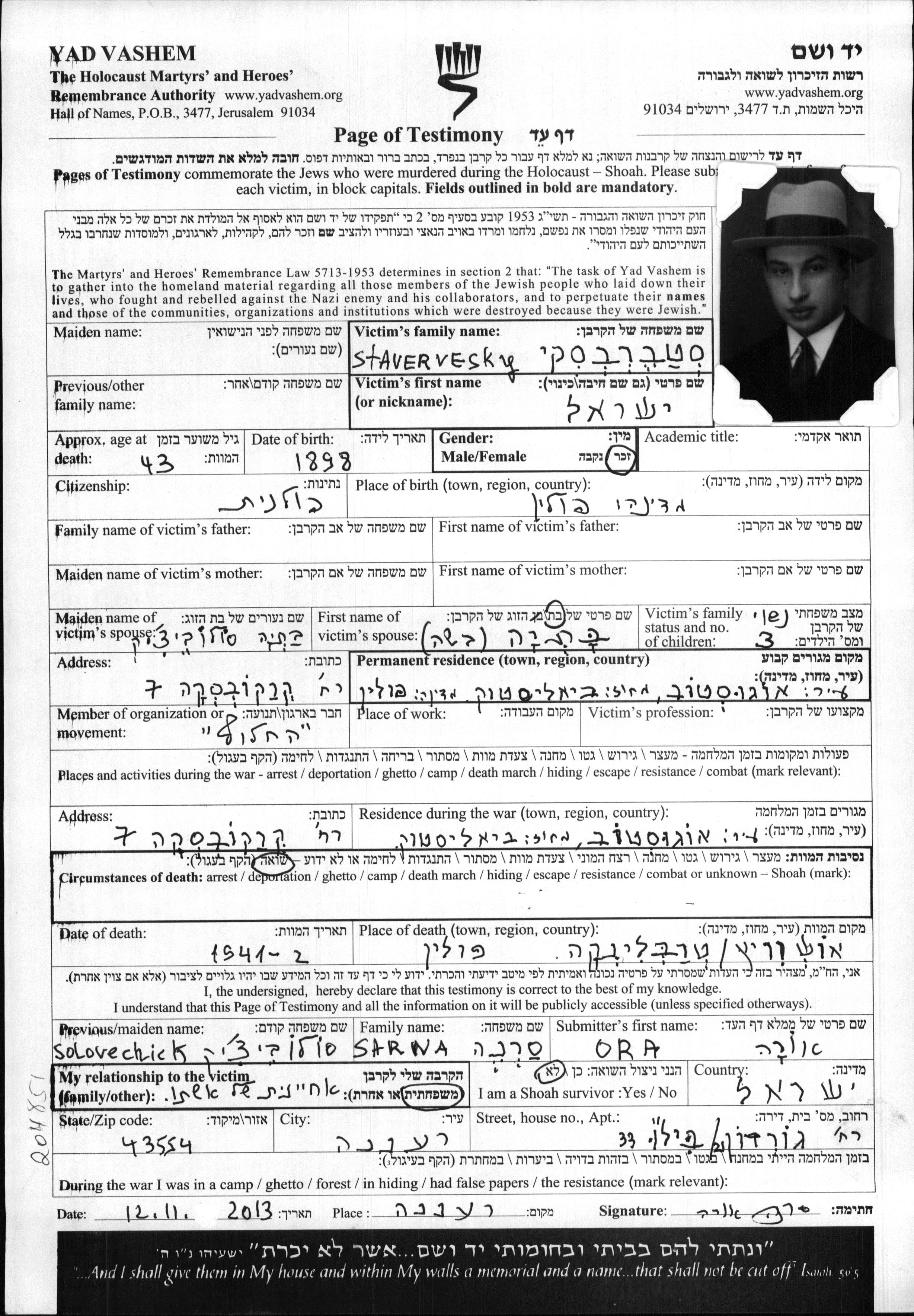 Yisrael Stavervesky wurde im Jahr 1898 in Polen geboren. Vor dem Zweiten Weltkrieg lebte er in Augustów, Polen.