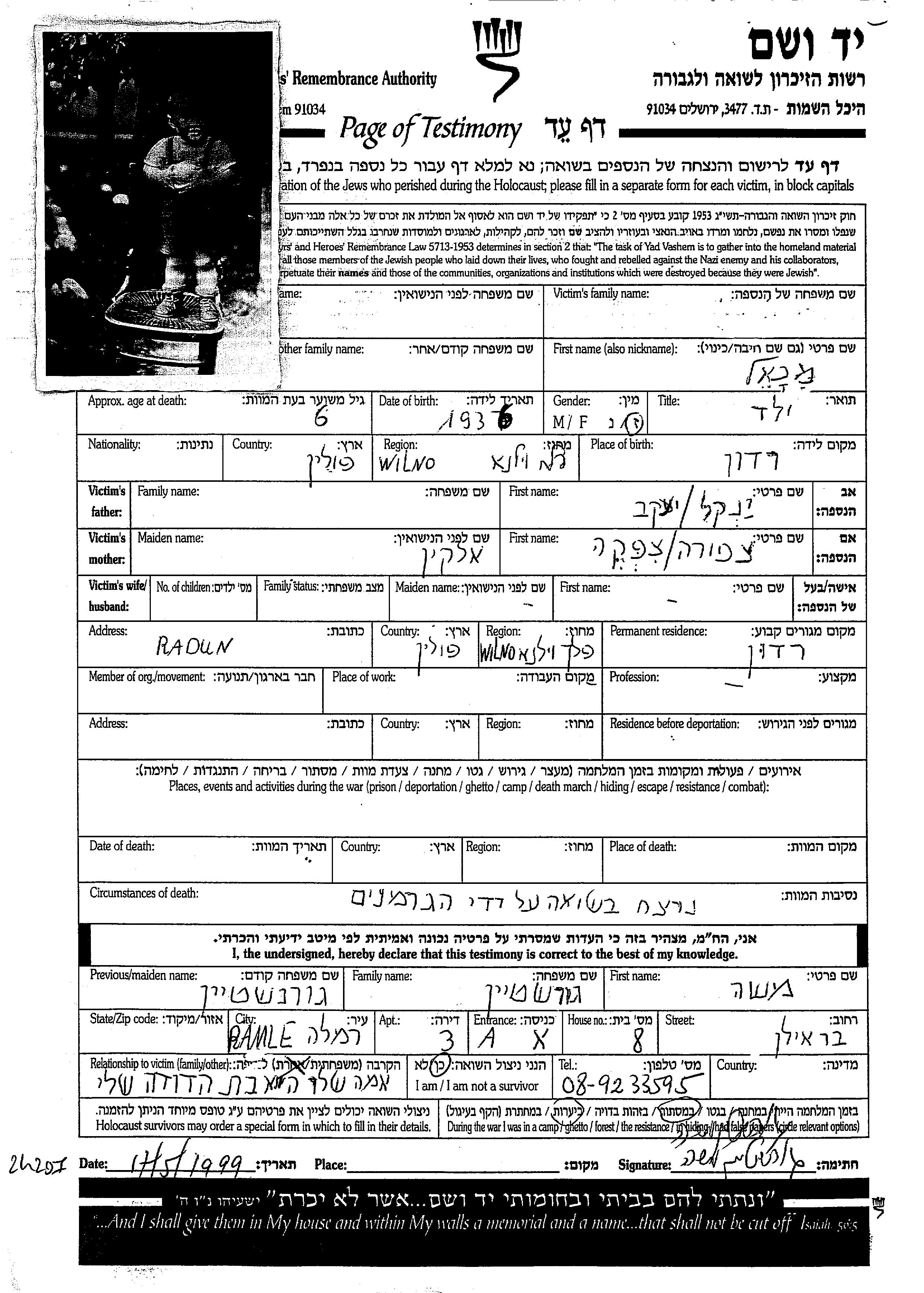 Mekhael wurde in der Schoah ermordet. Todesort: unbekannter Ort.