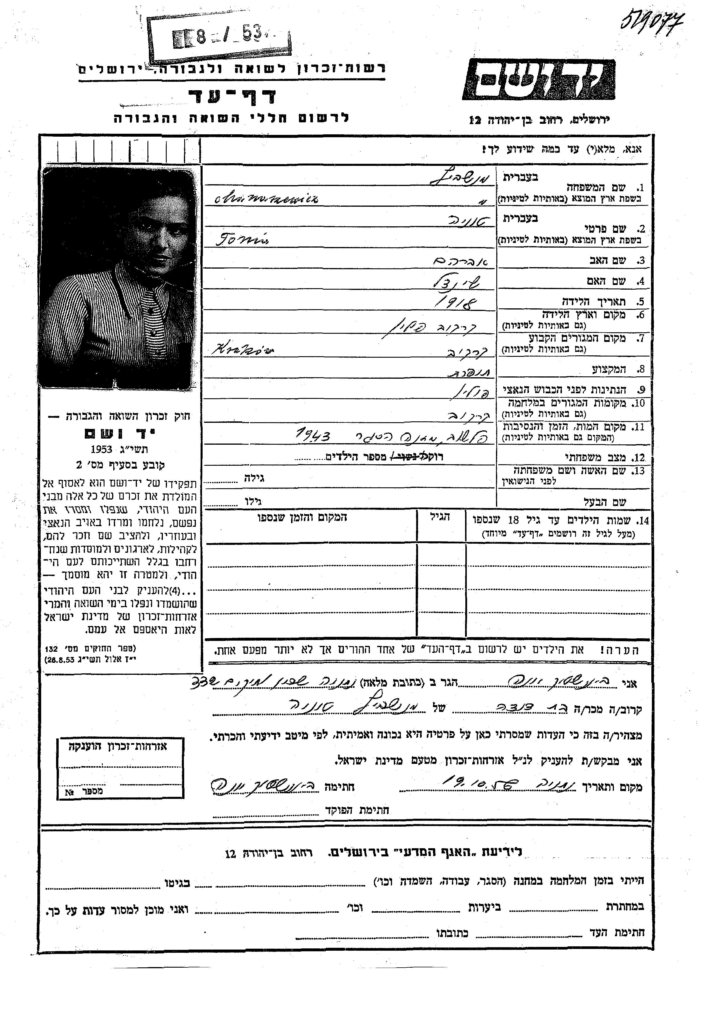 Tonia wurde in der Schoah ermordet. Todesort: Plaszow, Polen im Jahr 1943.