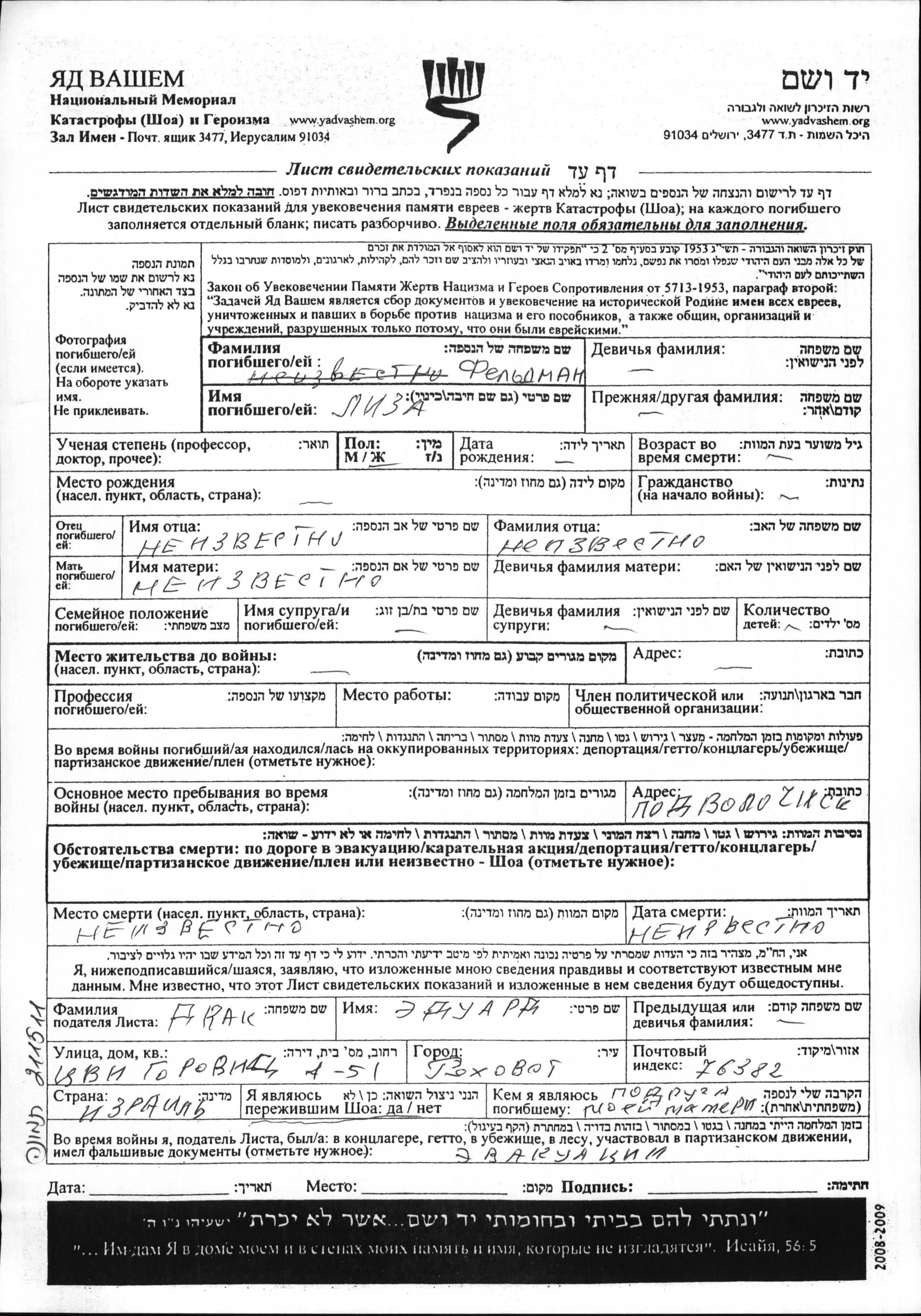 Liza wurde in der Schoah ermordet. Todesort: unbekannter Ort.