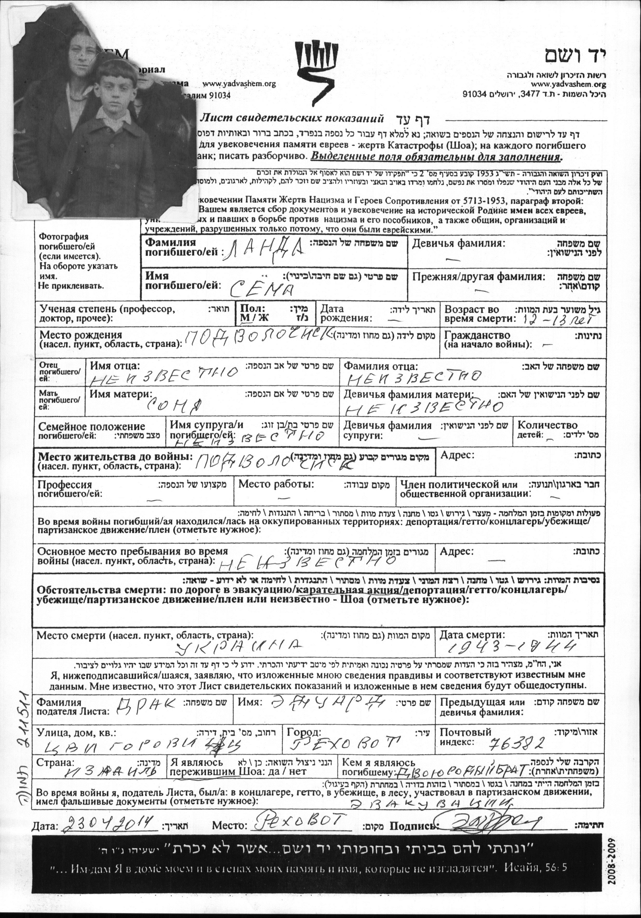 Syoma wurde in der Schoah ermordet. Todesort: Ukraine (UdSSR) im Jahr 1943.