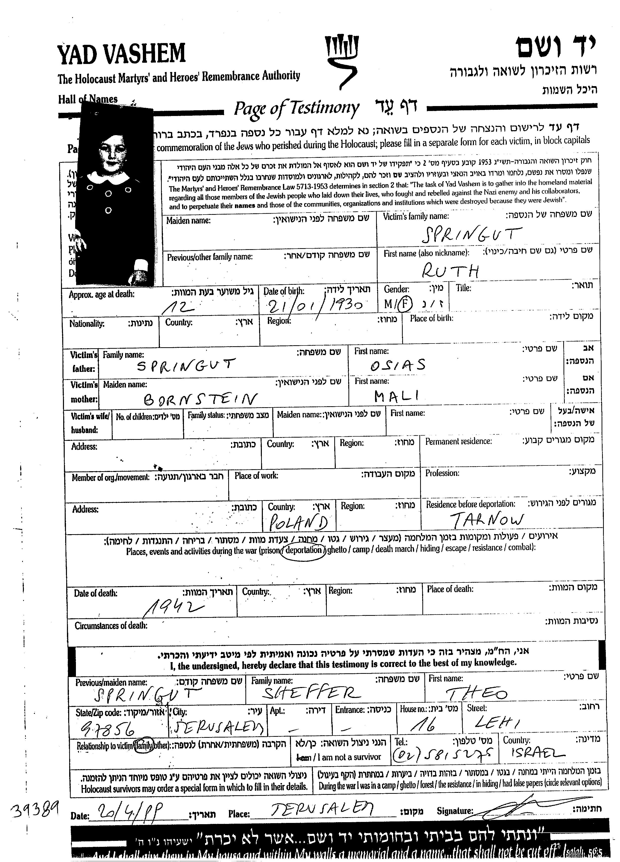 Ruth wurde in der Schoah ermordet. Todesort: unbekannter Ort.