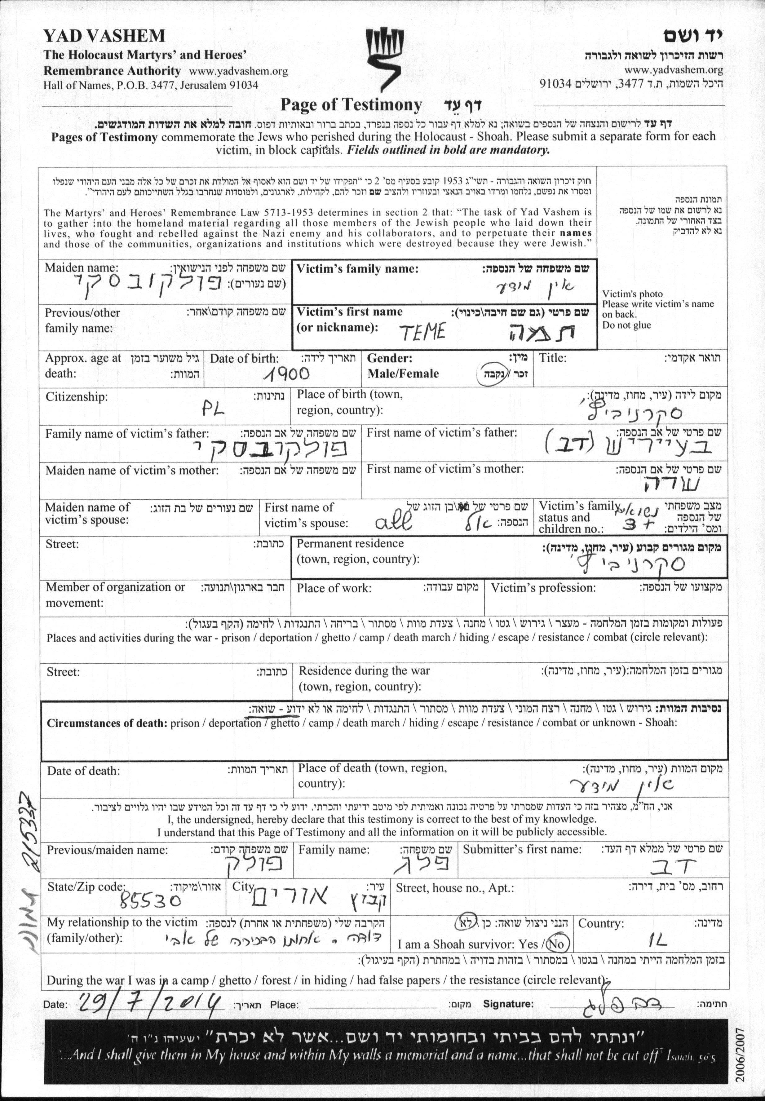 | Name unbekannt | Teme | 1900 | Skierniewice, Polen | Gedenkblatt |