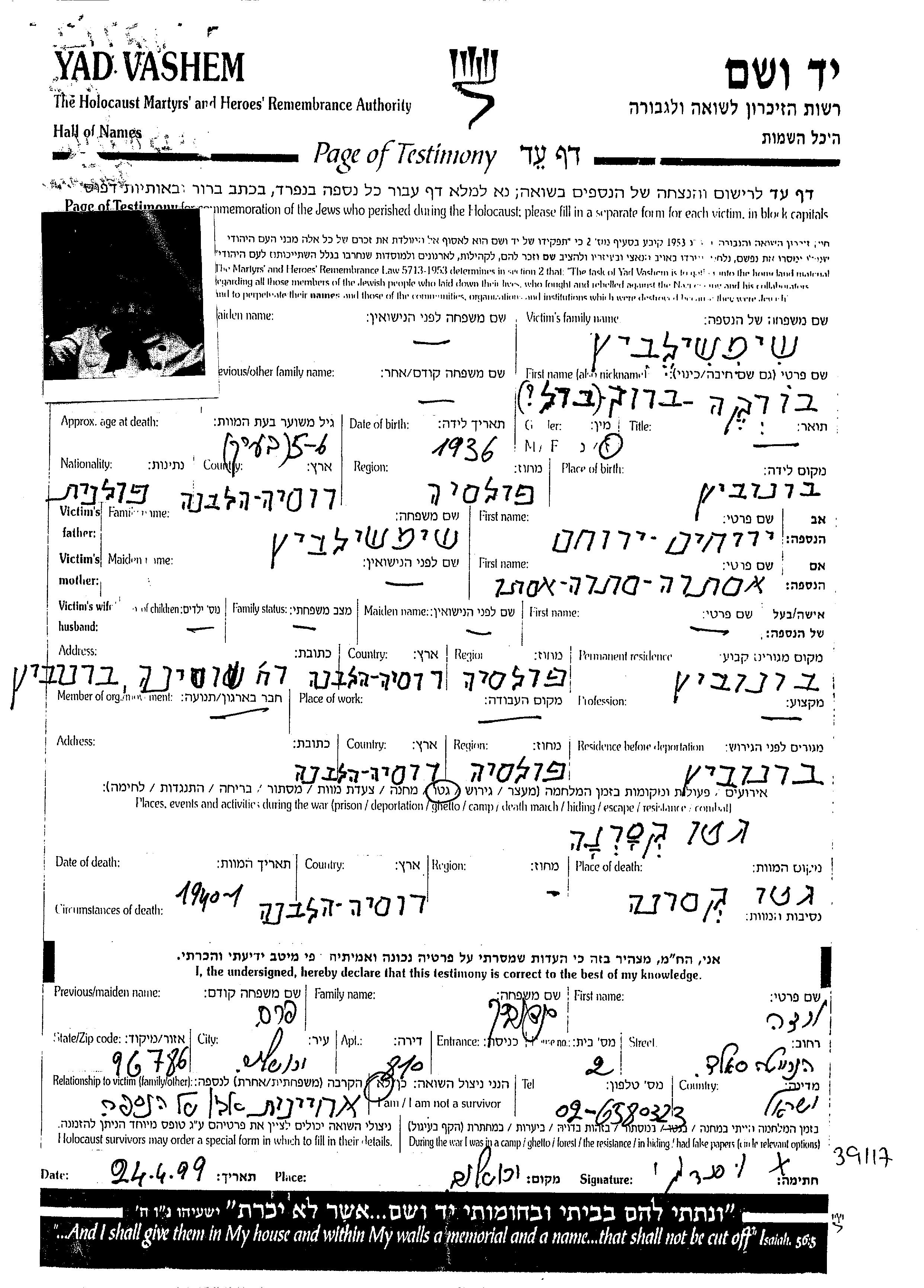 Borke Berl Shimshilevitz wurde im Jahr 1936 in Baranowicze, Polen geboren. Vor dem Zweiten Weltkrieg lebte er in Baranowicze, Polen.