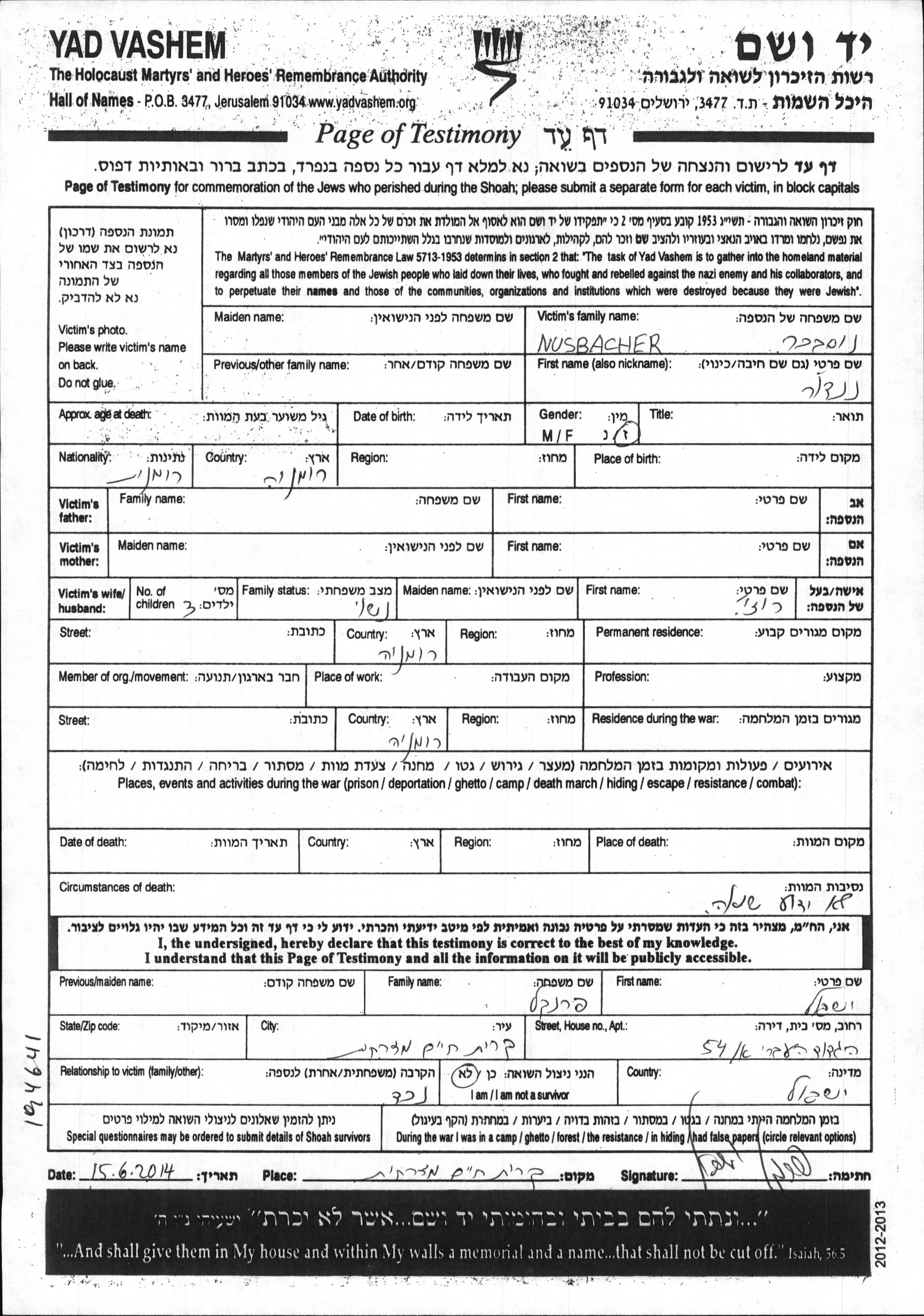Nandor Nusbacher. Vor dem Zweiten Weltkrieg lebte er in Rumänien.
