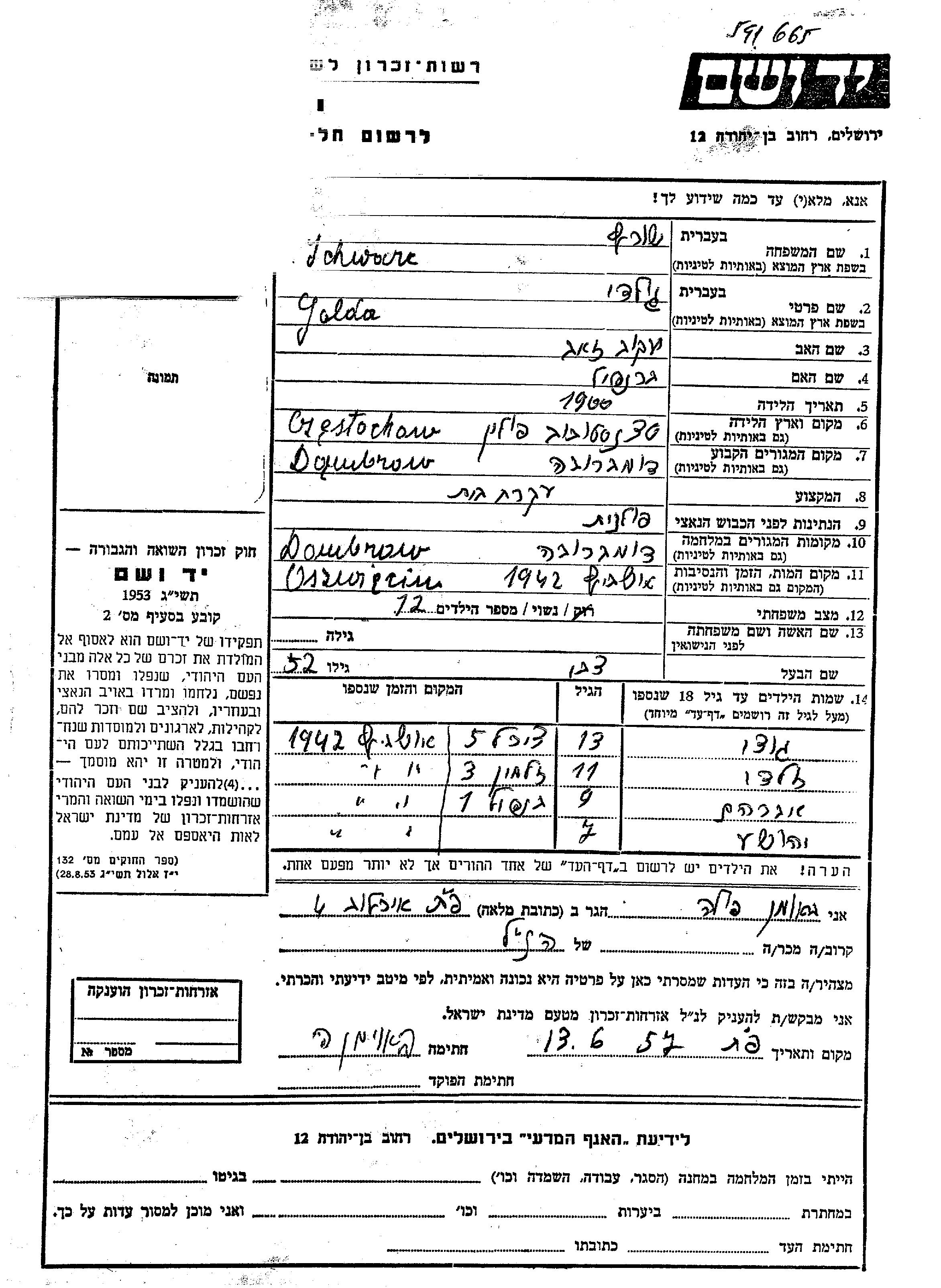 Goldi wurde in der Schoah ermordet. Todesort: Auschwitz, Polen im Jahr 1942.