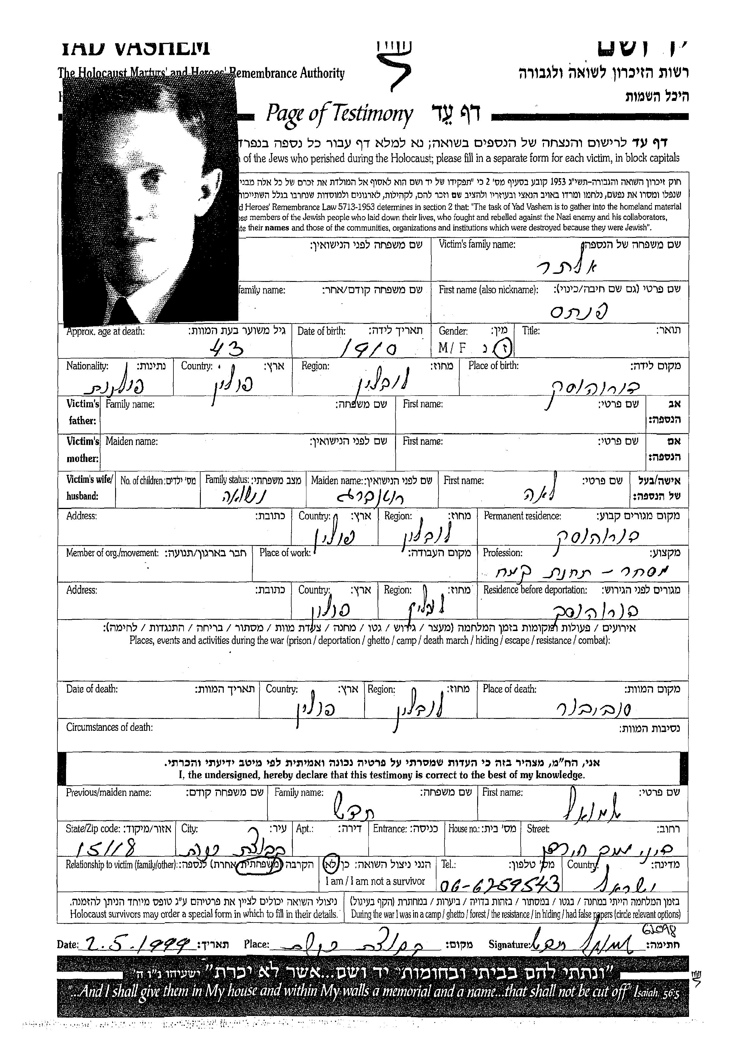 Pinkhas Alter wurde im Jahr 1910 in Dorohusk, Polen geboren. Vor dem Zweiten Weltkrieg lebte er in Dorohusk, Polen.