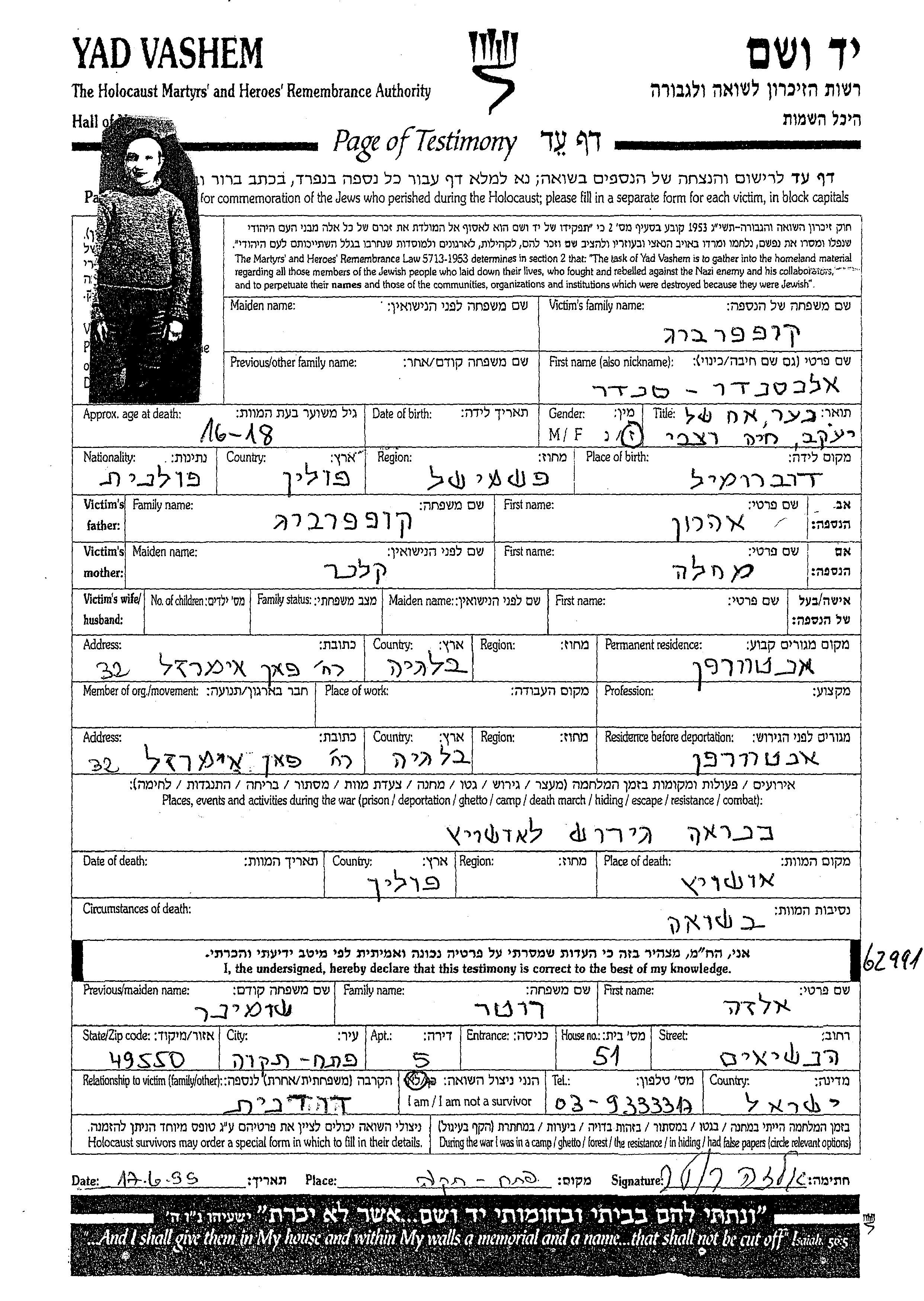Aleksander wurde in der Schoah ermordet. Todesort: Auschwitz, Polen.