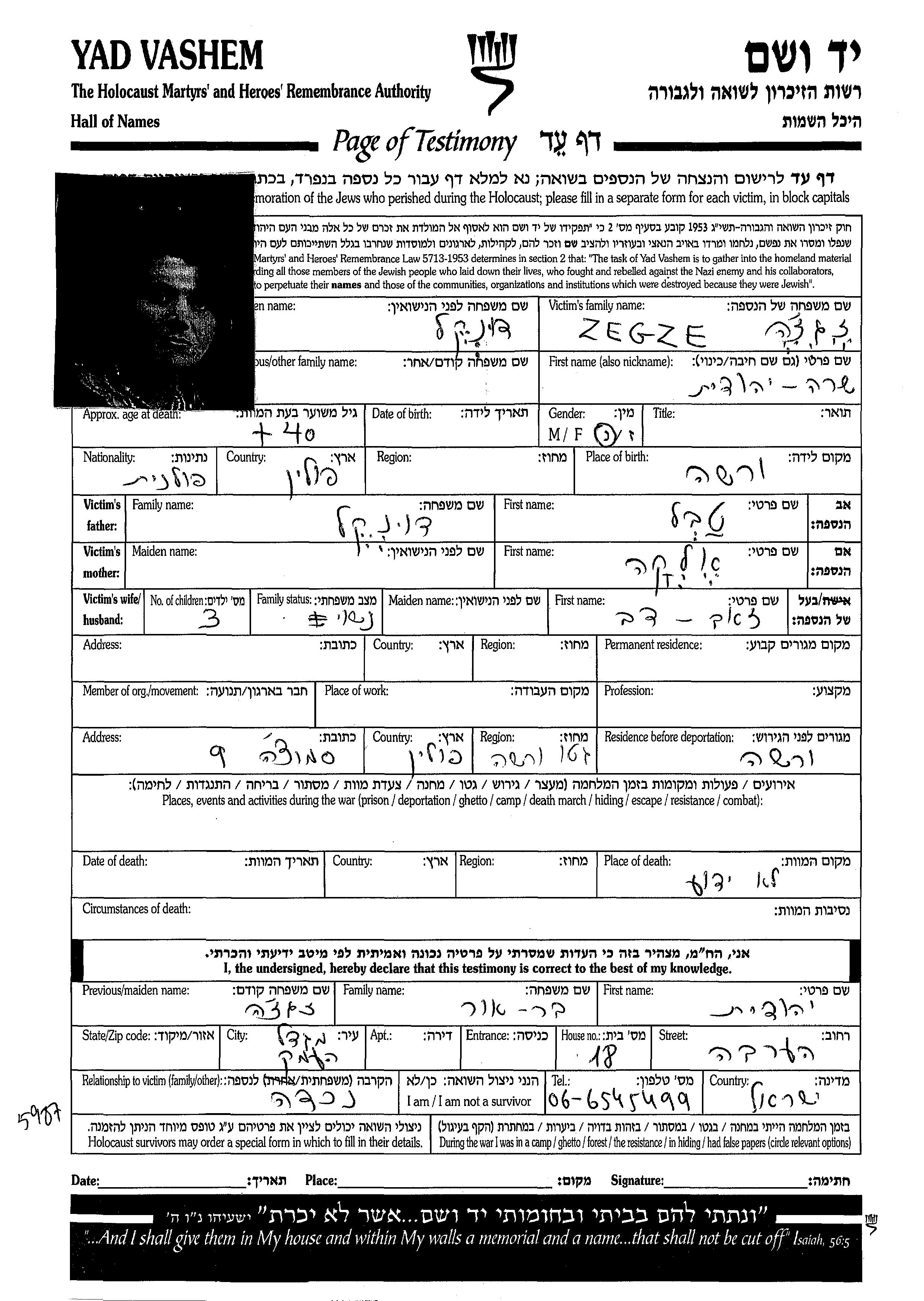 Sara Zegze, geb. Dunkel wurde in Warszawa, Polen geboren.