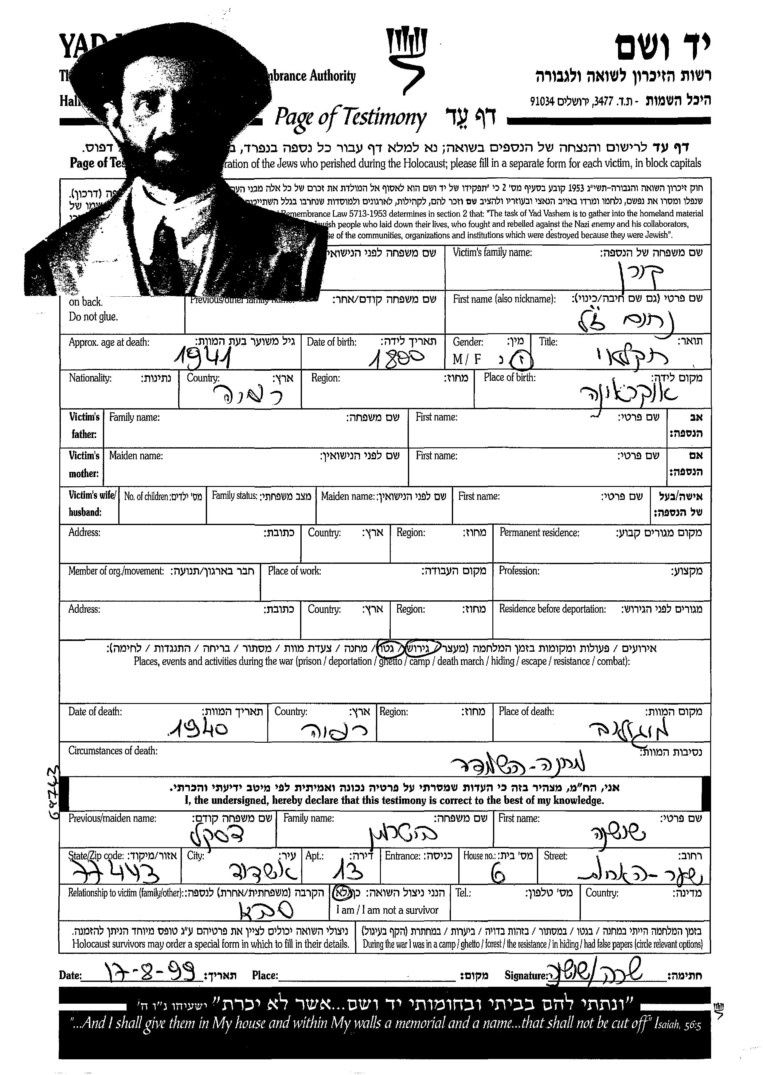 Nakhum wurde in der Schoah ermordet. Todesort: Mogilev Podolskiy, Ukraine (UdSSR) im Jahr 1941.