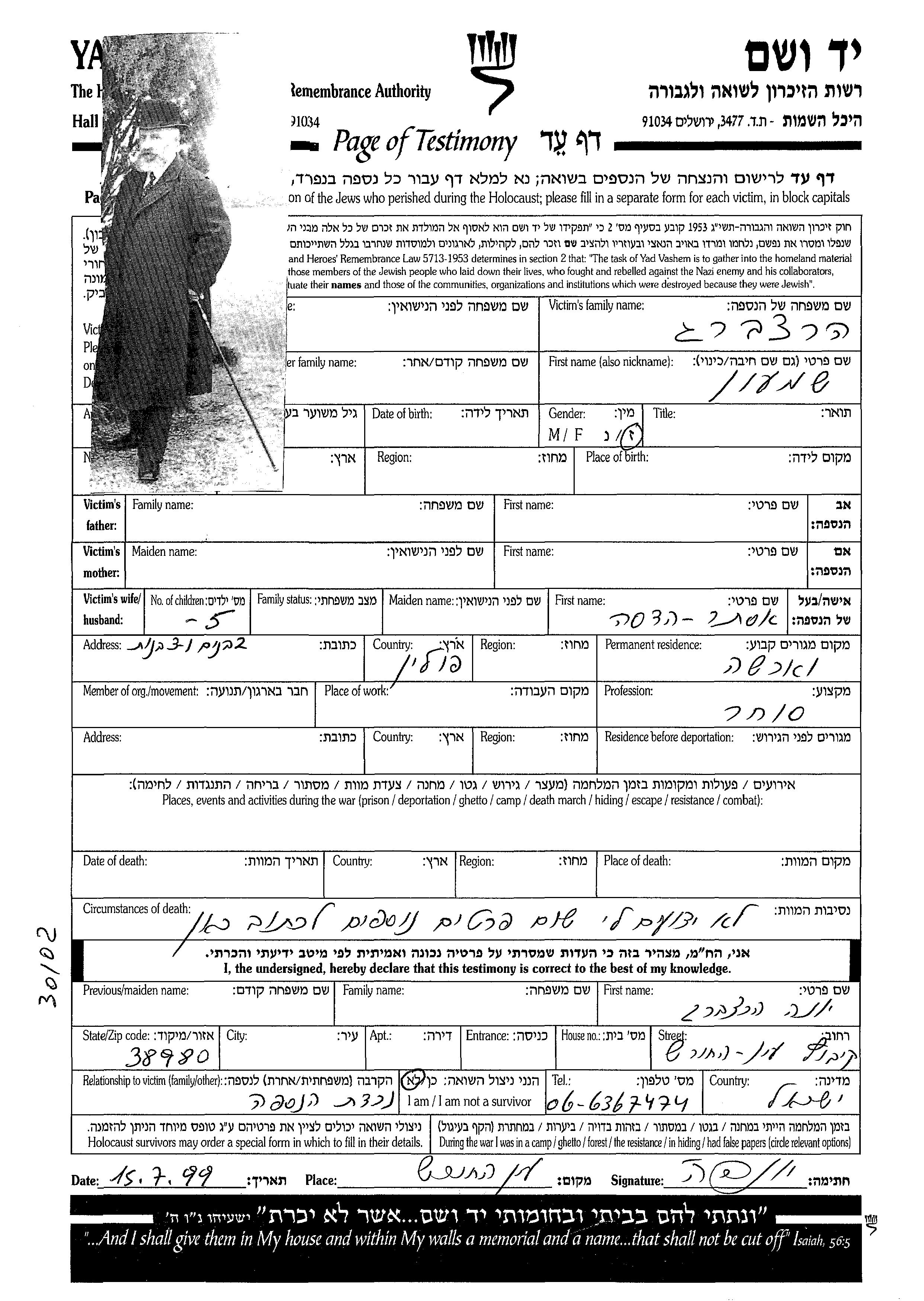 Shimon wurde in der Schoah ermordet. Todesort: unbekannter Ort.