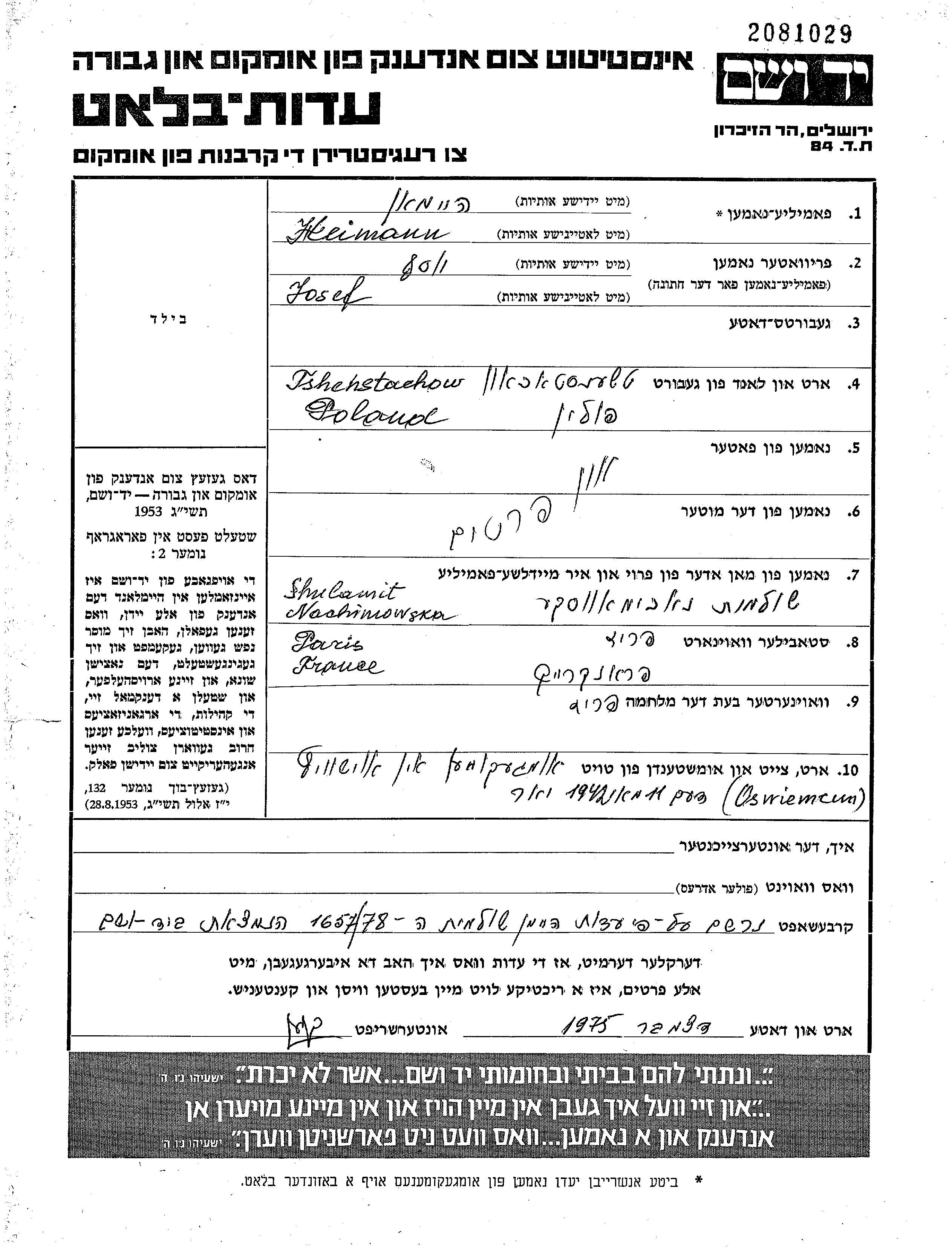Juden wurden in der Schoah auf verschiedenste Weisen ermordet, unter anderem: Vergasen, Erschiessen, lebendig verbrannt werden, lebendig begraben werden, Tod durch Erschöpfung durch Zwangsarbeit, Epidemien, mangels jeder hygienischer Bedingung oder dem Fehlen medizinischer Versorgung. Manche Juden nahmen sich das Leben, um der Festnahme und weiterer Verfolgung zu entgehen oder ihr hoffnungsloses, nicht nachlassendes Leiden zu beenden.